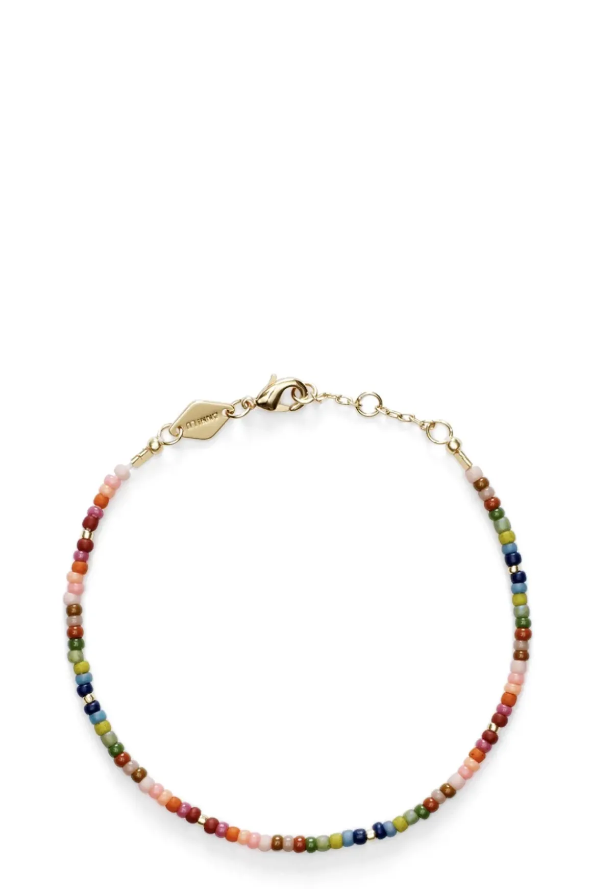 Armbånd Boho Rainbow Gold fra Anni Lu’s The Echo Beach Collection. Den nye serien er inspirert av en bohemsk livsstil fra 70-tallet, i harmoni med naturen og surfelivet på Bali og Hawaii. Kolleksjonen kombinerer robuste materialer med delikate detaljer. Kombiner gjerne flere armbånd sammen i ulike stiler og farger for en unik look.