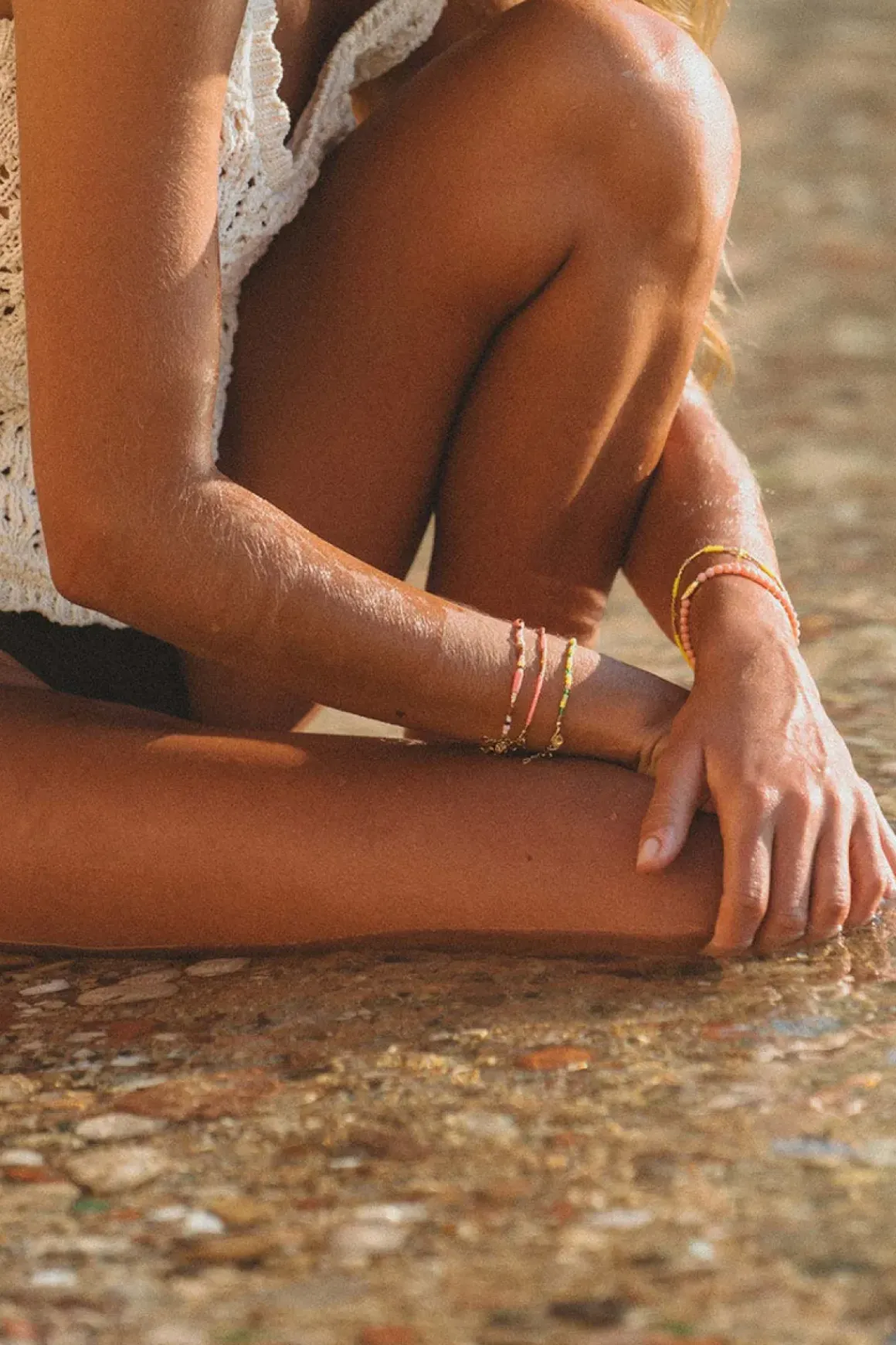 Clemence-armbåndet fra Anni Lu og Il Mare-kolleksjonen kombinerer delikate rosa perler med varme gulltoner og små steindetaljer. Inspirert av havets skatter og solens glød, er dette et lekent smykke som passer perfekt alene eller sammen med andre favoritter.