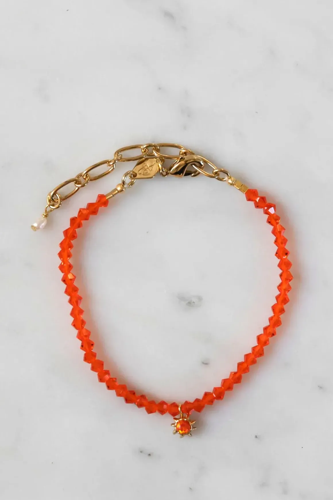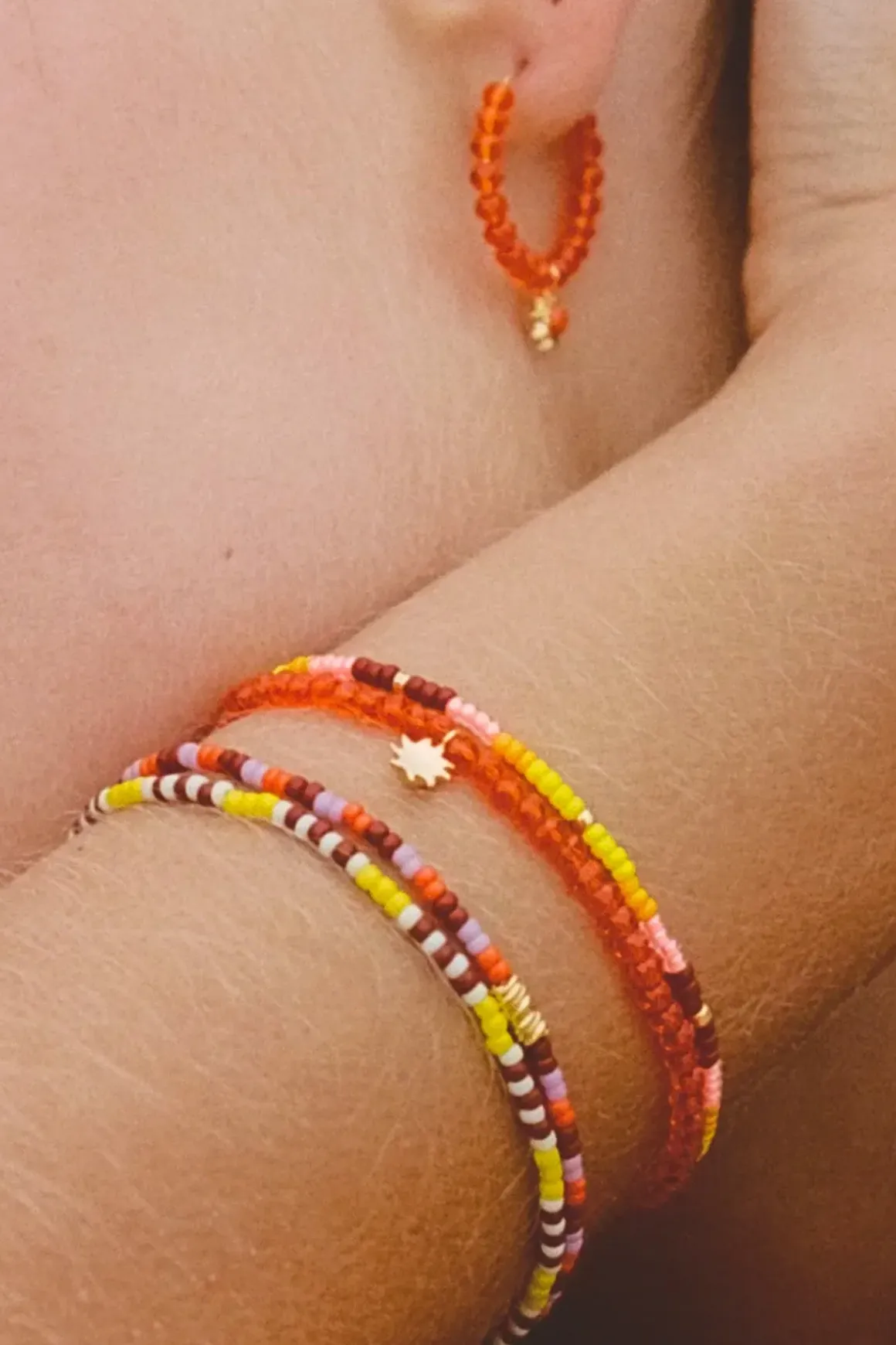 Tangerine Dream Golden armbånd fra Anni Lu sin nye kolleksjon Pacifico. Farger og inspirasjon er hentet fra magiske solnedganger i Stillehavet, bølger, herlige dager på stranden og lange sommer-netter. Den amerikanske surfekulturen og livsstilen gjenspeiles i sesongens kolleksjon. Organiske former fra havet er inkludert gjennom perler, skjell og gull. Her er det delikate detaljer kombinert med robuste materialer som gjelder.