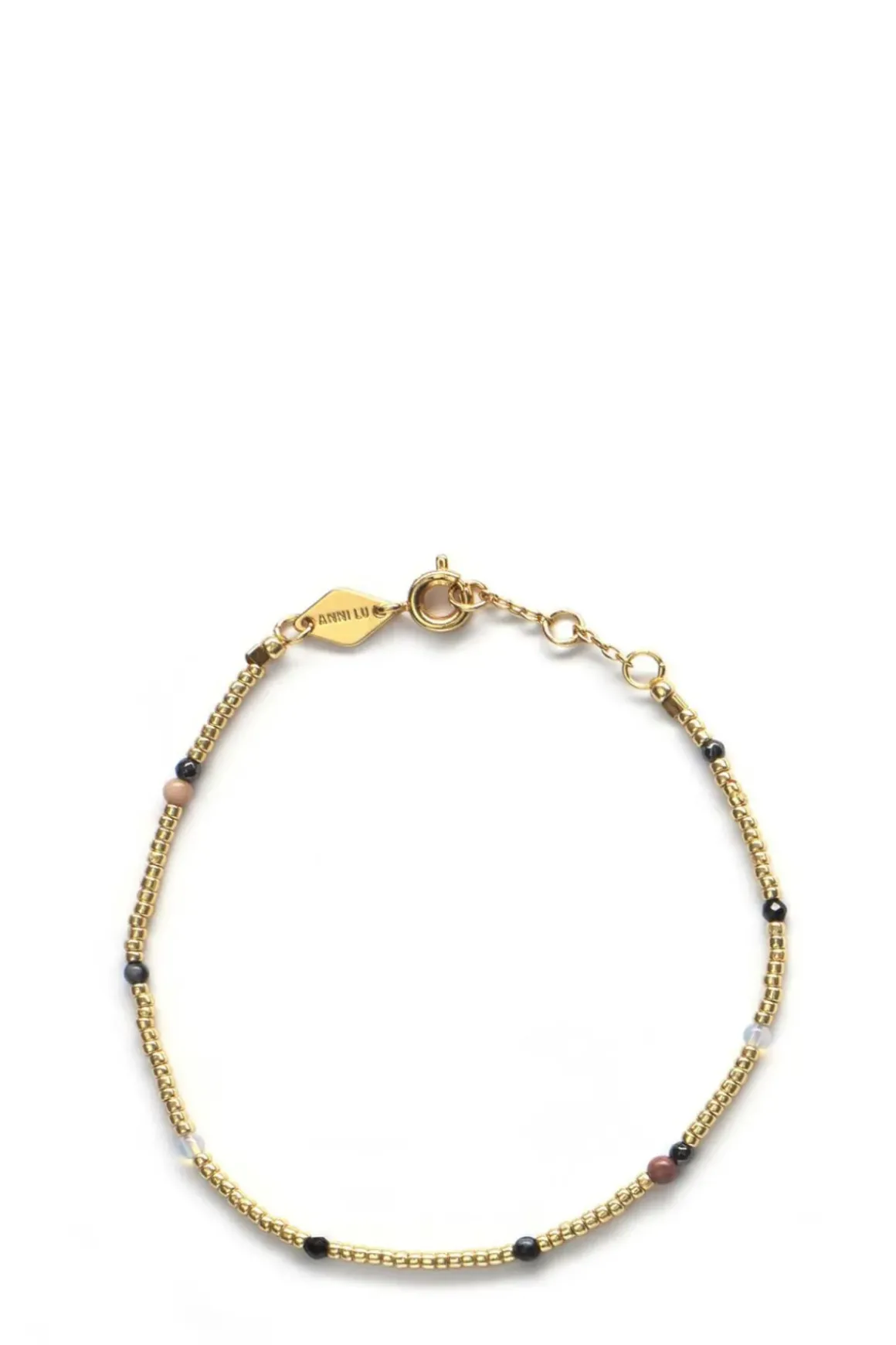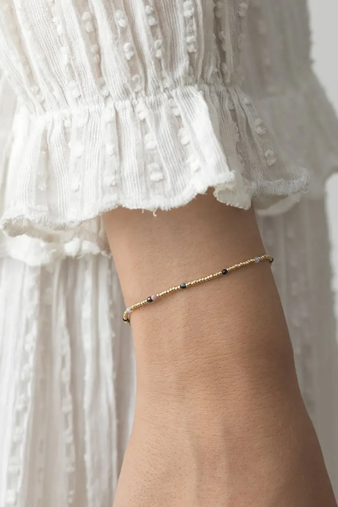 Willow Pale Gold-armbåndet fra Anni Lu er et tidløst smykke laget av 18k gullforgylt messing, pyntet med glassperler. Det er nydelig både alene og i kombinasjon med andre armbånd. Armbåndet fanger essensen av Anni Lu-universet – lekent og lett å mikse.