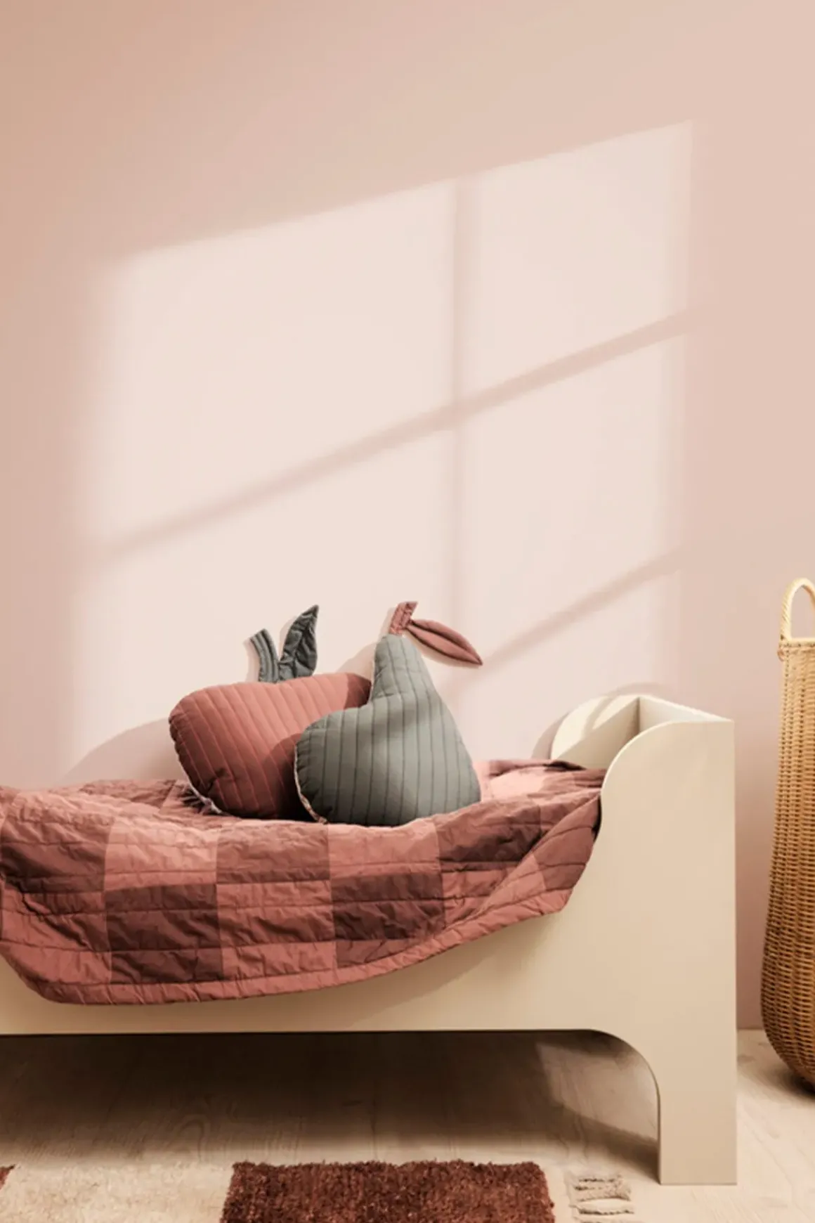 Sill Junior Bed barneseng i fargen Cashmere fra Ferm Living. En barneseng skal være et fristed for søte drømmer og koselige øyeblikk, og Sill Junior Bed er en moderne versjon av en tidløs barneseng med sine myke kurver og høye hodegjerde. Sengen er laget av FSC™️ Mix-sertifisert, malt MDF i en vakker beigefarge som er enkel å matche med andre møbler og ulike interiørstiler. Sengen passer til madrass med mål 70 cm x 160 cm x 10 cm. Leveres med sengebunn.