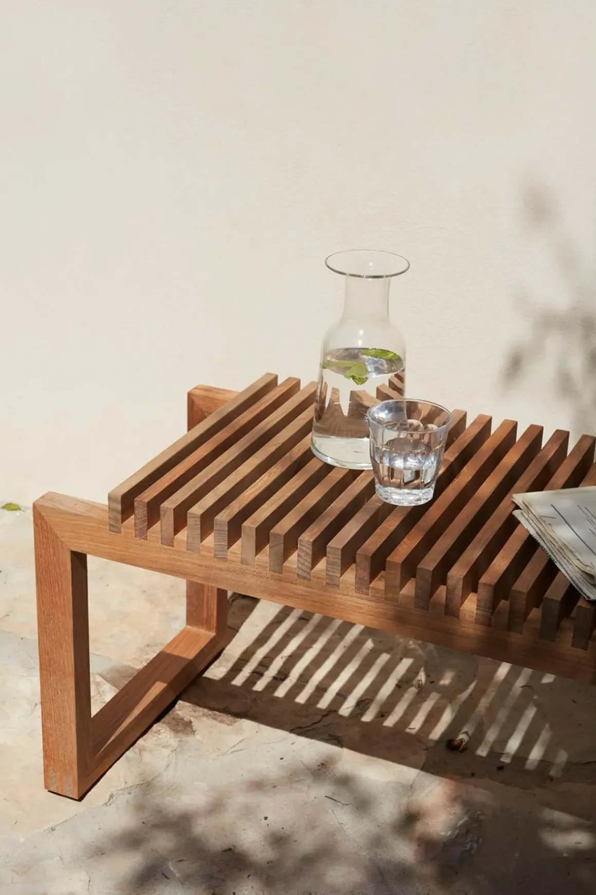 Cutter Benk designet av Niels Hvass. Benken ble opprinnelig designet for en utstilling kalt Walk the Plank, men er nå blitt en del av Skageraks sortiment. Vi elsker det moderne designet som er både spennende og enkelt på samme tid. Laget i slitesterk og robust teak, som gjør at du kan bruke benken ute (og inne).
