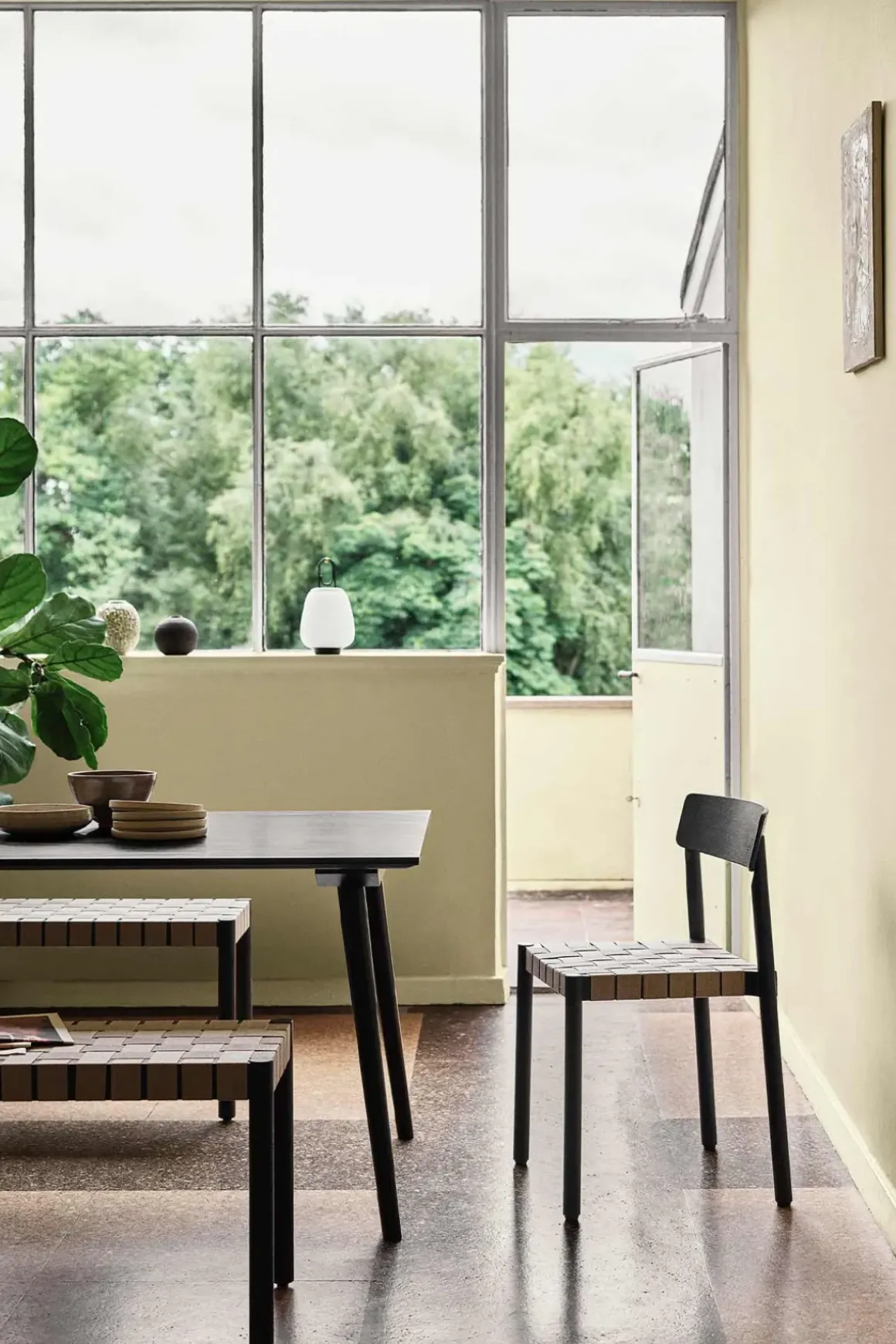 - Materiale: FSC-sertifisert, sortlakkert, heltre eik | Håndvevet sete med naturlig lin | Filtglidere