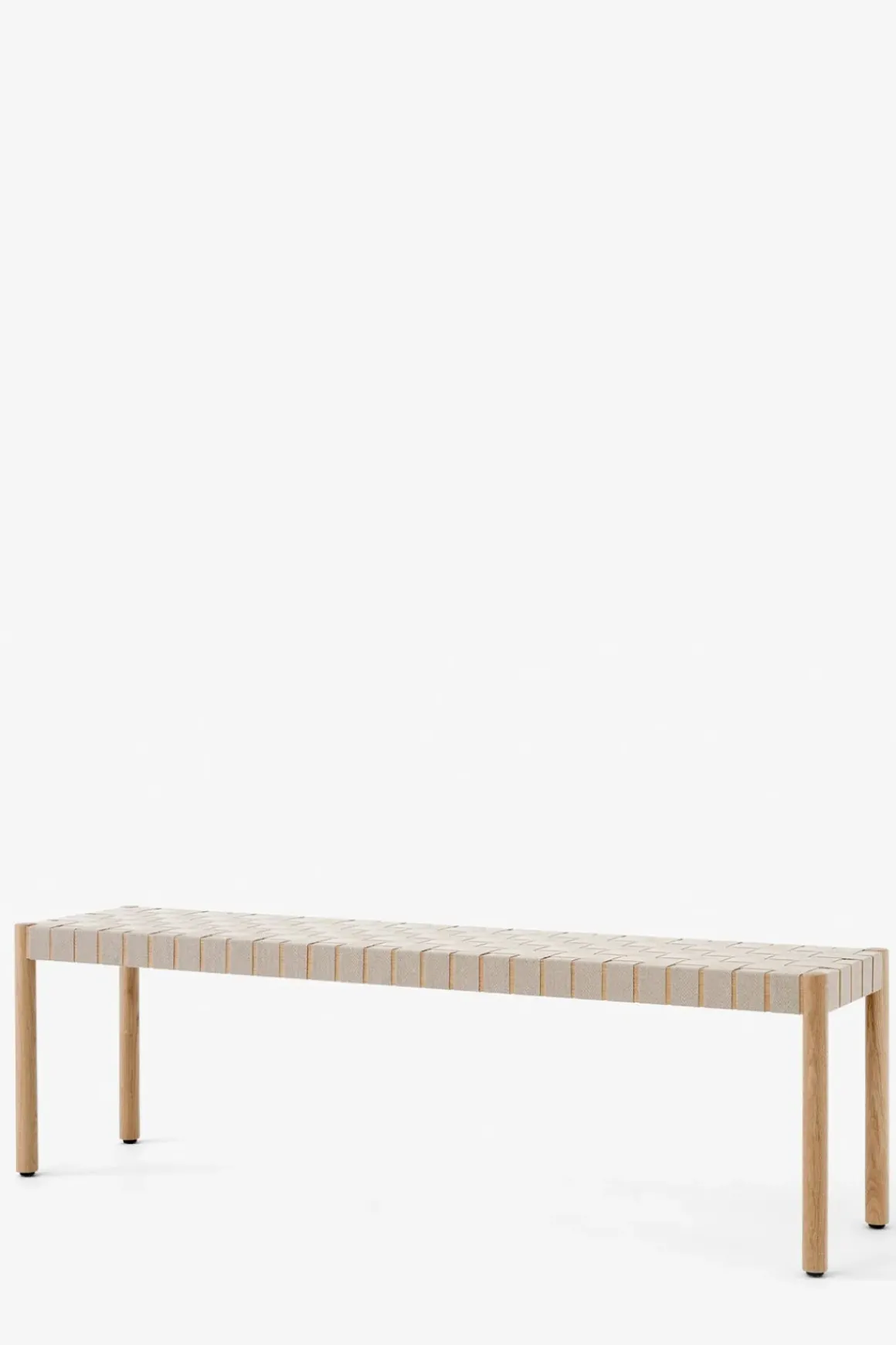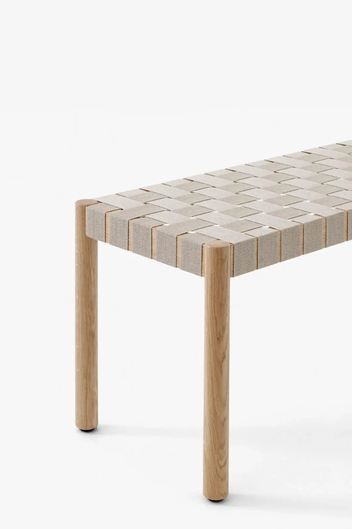 TK5-benken fra u0026amp;Tradition er oppkalt etter Betty Nansen-teatret i København og er designet av Jakob Thau og Sami Kallio. Benken er laget av lakkert heltre med sete av håndvevde, brede linbånd av naturlige linfibre. Eikerammen i massivt tre er tilgjengelig i tre finisher: Svartlakkert ask, rødbrunlakkert ask og lakkert, massiv eik med naturlig, flettet lin, samt en versjon i svartlakkert ask med svartfarget lin. Benken er også tilgjengelig i to lengder: 105cm og 157cm. Betty er en nett og taktil benk i naturlige, varige materialer som kan brukes både hjemme og på hytta. Bruk den i gangen, på kjøkkenet, soverommet eller på barnerommet.