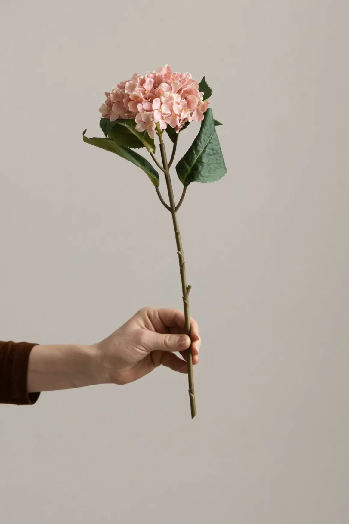 Rosa Hortensia fra Mr Plant er en vakker, naturtro blomst som gir hjemmet ditt et tidløst og frodig preg. Med realistiske detaljer og blader i rosa og grønt, passer denne blomsten perfekt som en del av en bukett, i en vase alene, eller som dekor i et større blomsterarrangement.