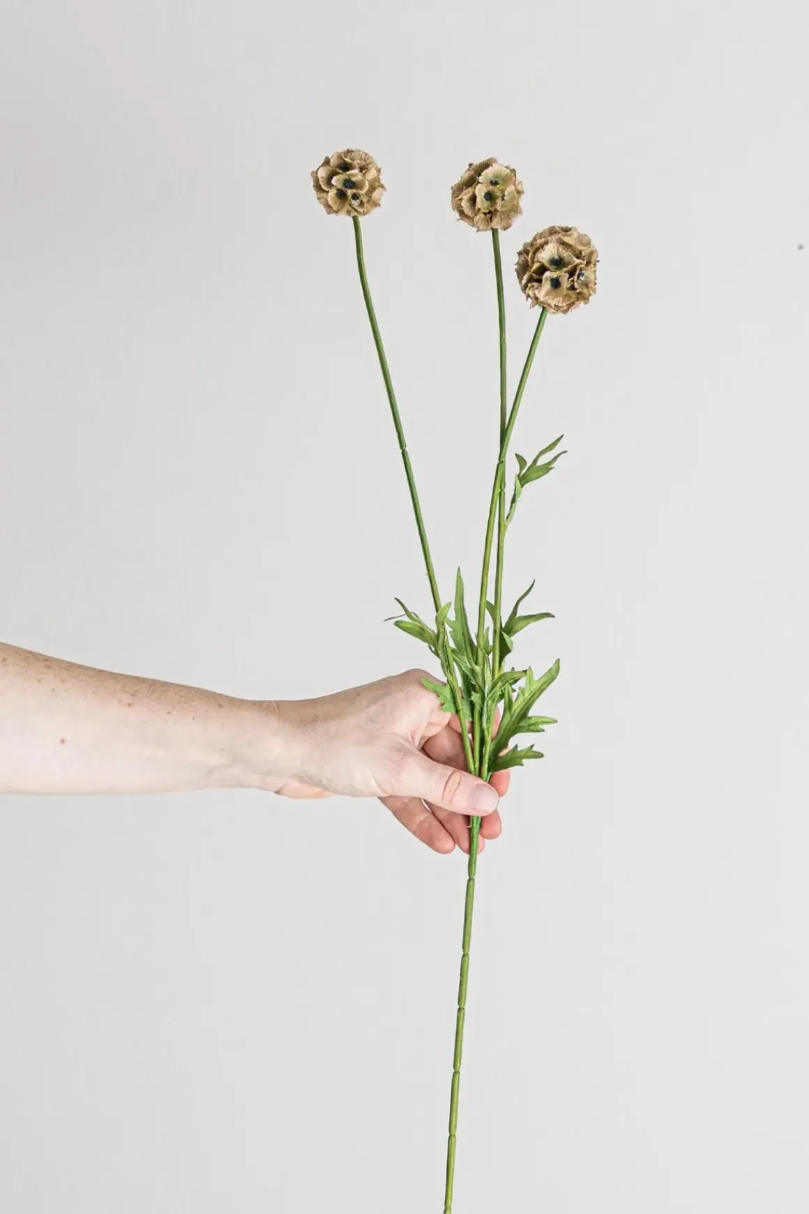 Nydelig Scabiosa fra Mr Plant. Perfekt for deg som ikke har grønne fingre, eller ikke orker å styre med vedlikehold. Blomsten er av ypperste kvalitet i silke og plast. Sett den sammen med andre blomster og grønne kvister til en større bukett, eller alene i en høy, slank vase. Den er også kjempefin som dekorasjon til borddekkingen.