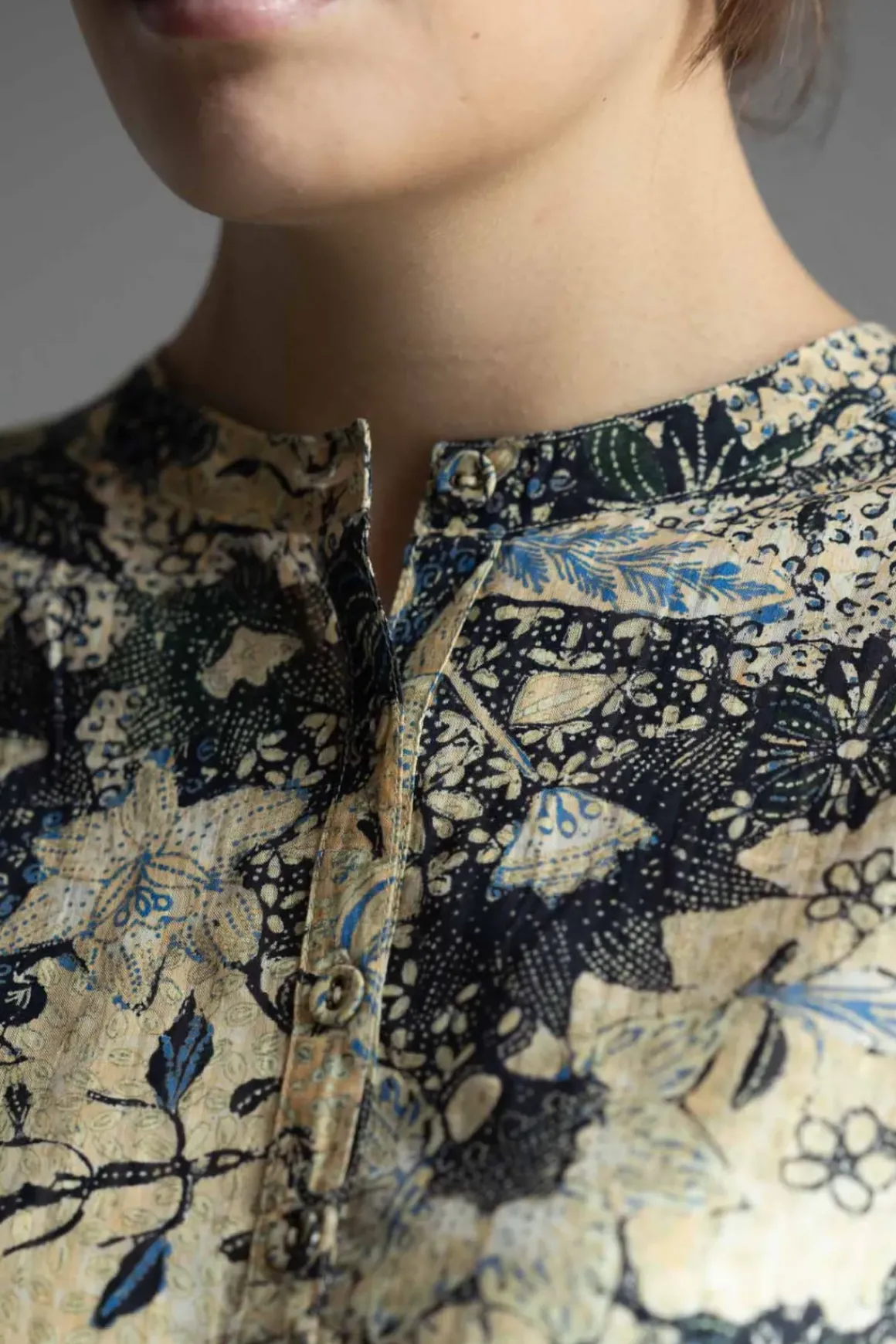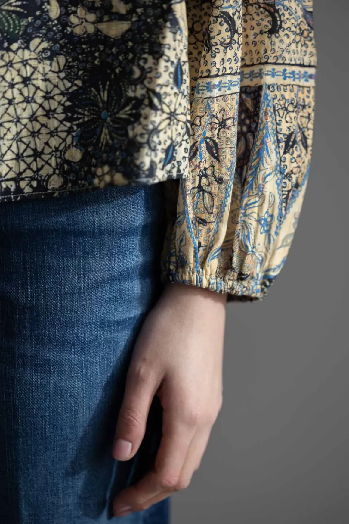 Den allsidige Harlowe-blusen fra Ulla Johnson er en bluse som enkelt kan brukes alene med jeans for en avslappet stil eller kombineres med matchende skjørt. Blusen har knapper fra brystet opp til halsen, som gir fleksibilitet i uttrykket, enten du vil ha en åpen eller mer lukket stil. Strikken på håndleddene skaper en lett puffeffekt i ermene, mens rynkedetaljene på øvre rygg gir plagget en fin struktur og et lett fall. Laget i en myk og pustende blanding av bomull og viskose, er denne blusen like komfortabel som den er stilfull – perfekt til både hverdags og mer pyntede anledninger.