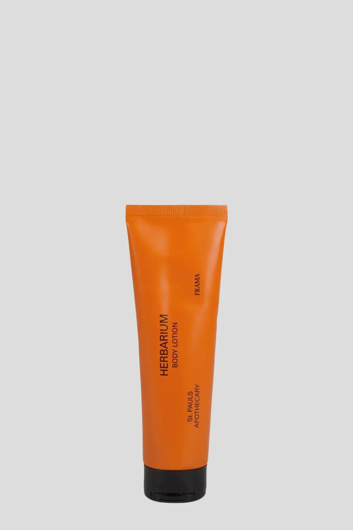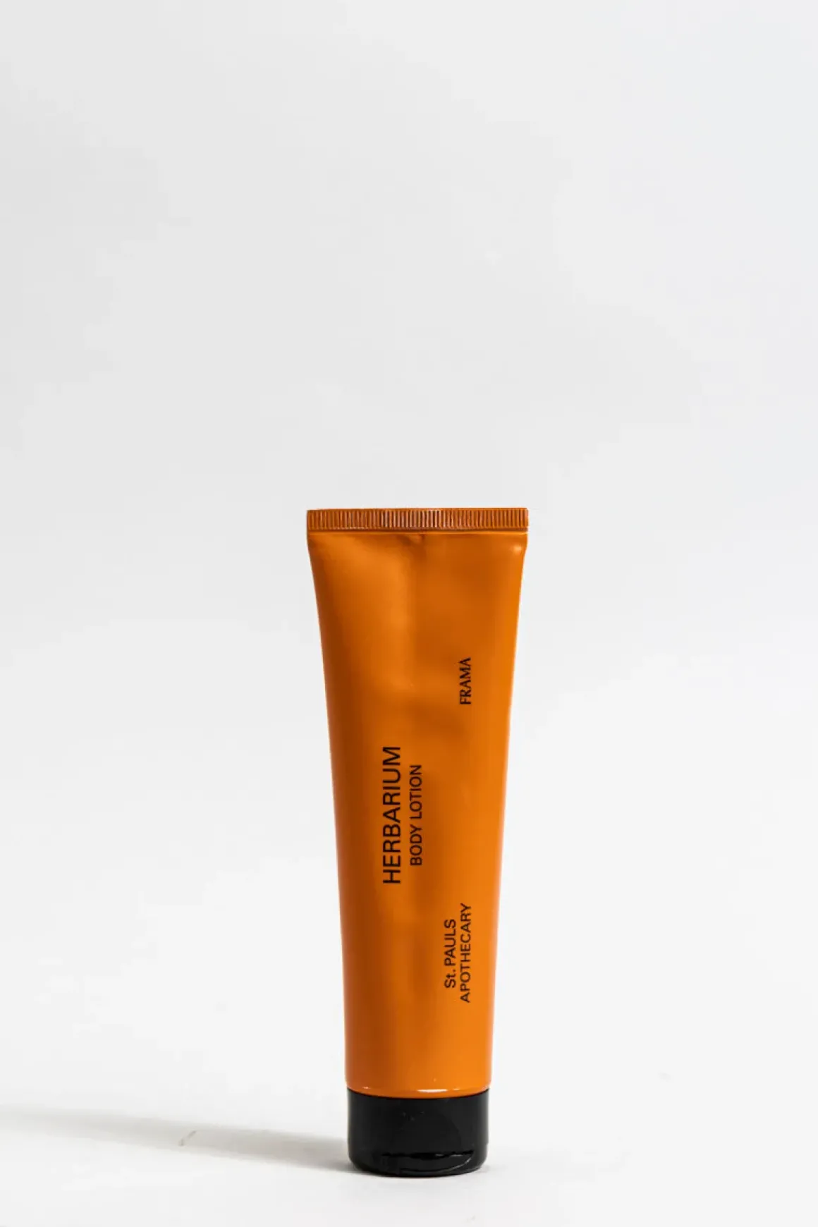 Herbarium body lotion fra Frama er en kompakt, reisevennlig og nærende body lotion på tube. Kremen har en frodig og dekadent duft, laget for å legemliggjøre den beroligende essensen av vill flora, med en frisk og likevel oppløftende aroma. Herbarium er laget i samarbeid med Be My Guest, et kreativt studio basert i Seoul, Sør-Korea. Kremen er laget med nærende sheasmør, E-vitamin og andre naturlige oljer som fukter i dybden og beskytter huden, samtidig som den fremmer cellefornyelse. Herbariums rike, treaktige og lyse sitrusnoter bringer tankene til en spasertur gjennom botaniske hager hvor duften av blomster og vilt gress er dominerende. Duften har hovedtoner av appelsin, rose, einer og ho-tre – et høyt eviggrønt tre med blanke, lysegrønne, aromatiske blader. Kremen trekker raskt inn uten å etterlate rester og avgir en fantastisk duft.