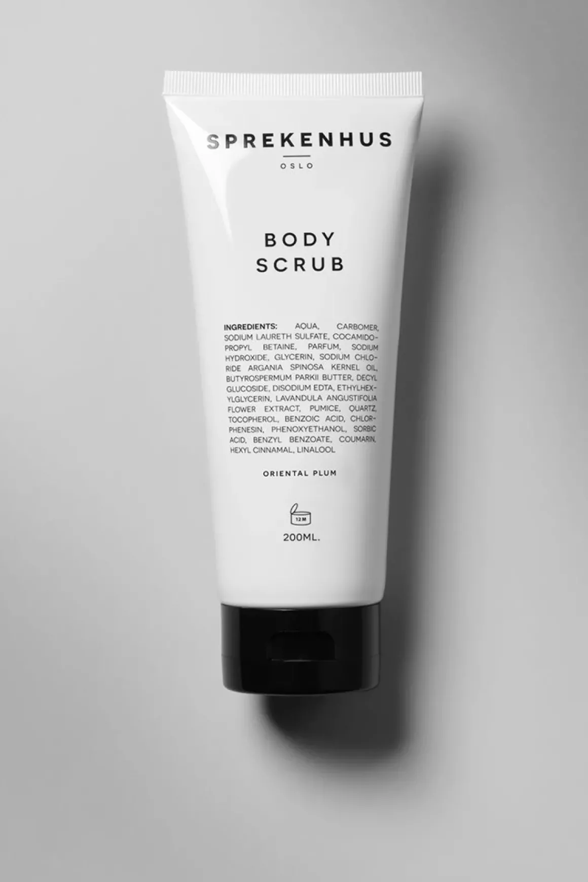 Sprekenhus sin Body Scrub er en rensende kroppsskrubb med naturlige ingredienser. Kornene i skrubben er av finmalt pimpstein, som eksfolierer kroppen skikkelig. Dette er en av grunnene til at denne har blitt en egen favoritt hos Bolina-gjengen! Denne har den deilige, forføriske duften Oriental Plum. Bruk én til to ganger i uken, og avslutt med Sprekenhus sin Body Cream for den ultimate opplevelsen og mykheten!
