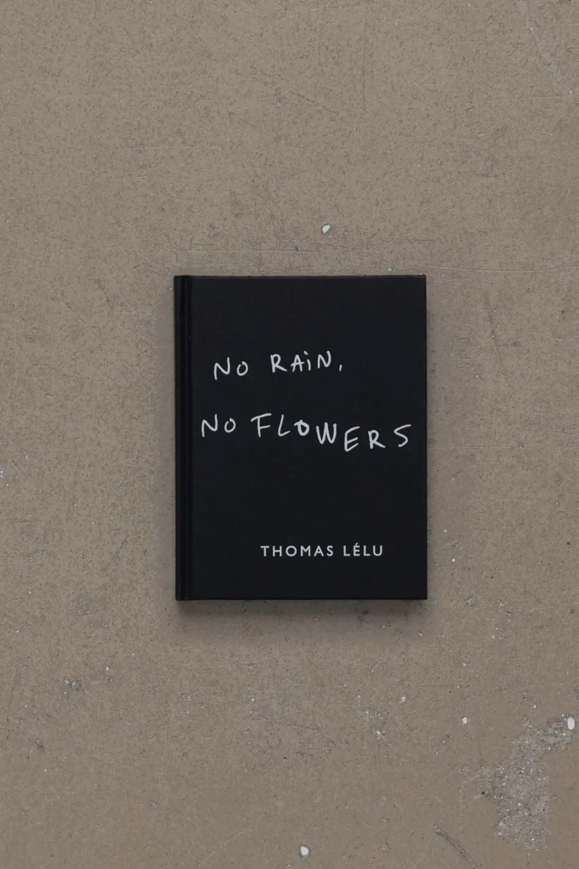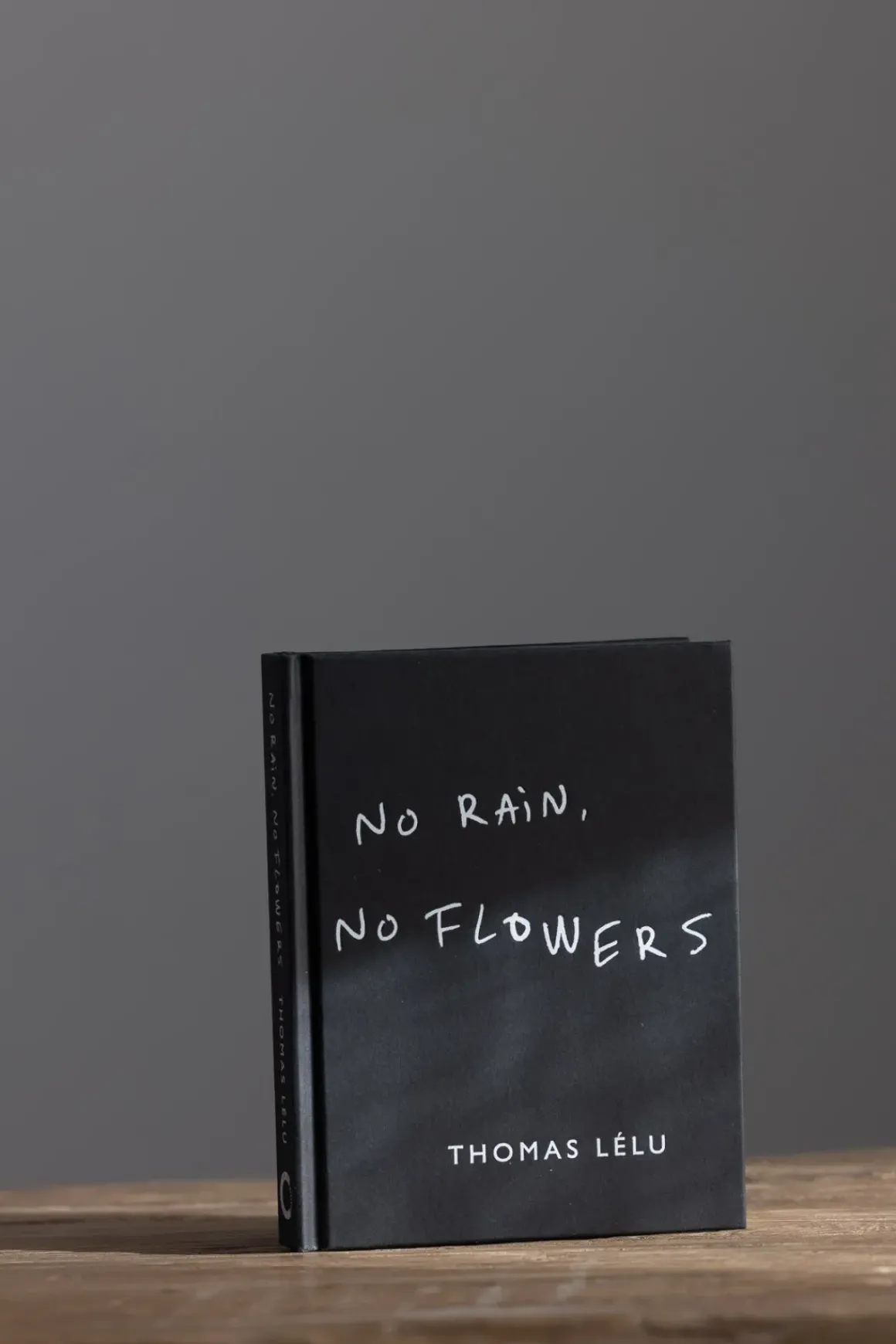 No Rain, No Flowers er en samling ufiltrerte, vanedannende, kloke og livsbekreftende håndskrevne notater fra den franske kunstneren, kuratoren og galleristen Thomas Lélu, som deler sin virale inspirasjon, visdom og humor.