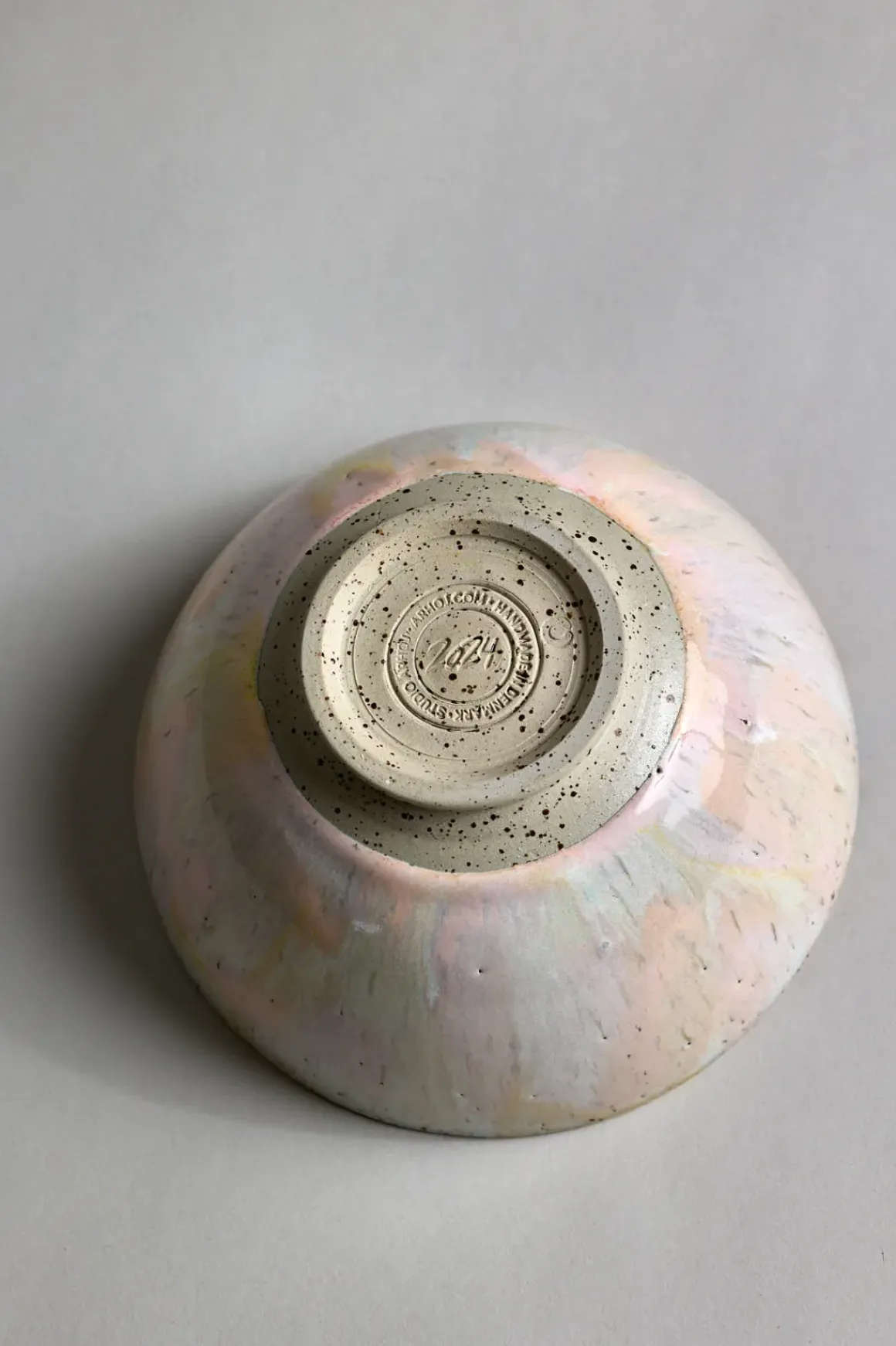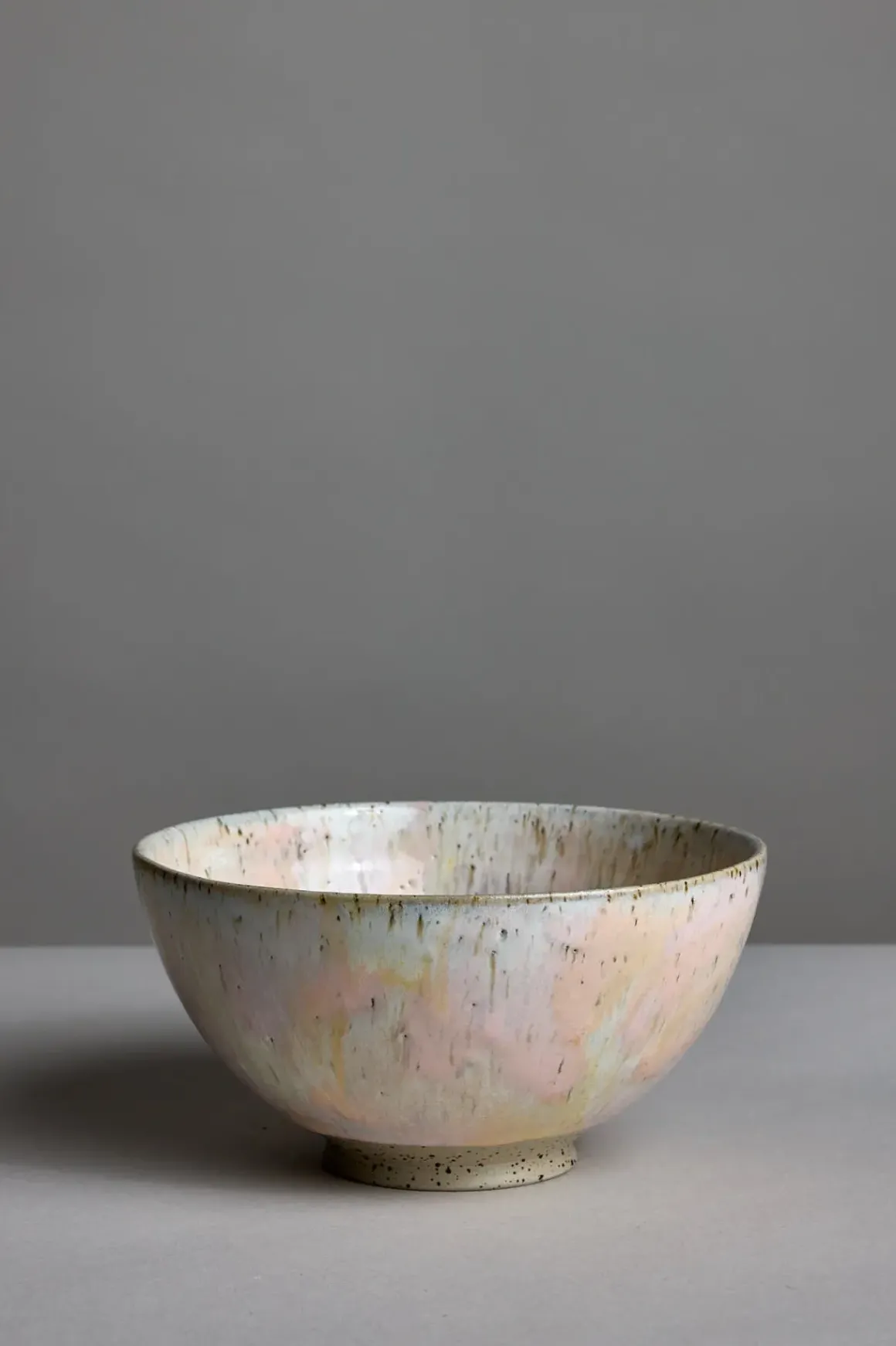 Spring Bowl fra Studio Arhoj – en håndlaget skål som bringer både funksjon og design til bordet. Laget i steintøy med nydelige glasurer i unike fargekombinasjoner, gjør hver Spring Bowl til et kunstverk i seg selv. Perfekt for servering av snacks, småretter, eller som en dekorativ skål, og den kan enkelt mikses med andre serviser eller skåler fra samme serie for et personlig uttrykk.