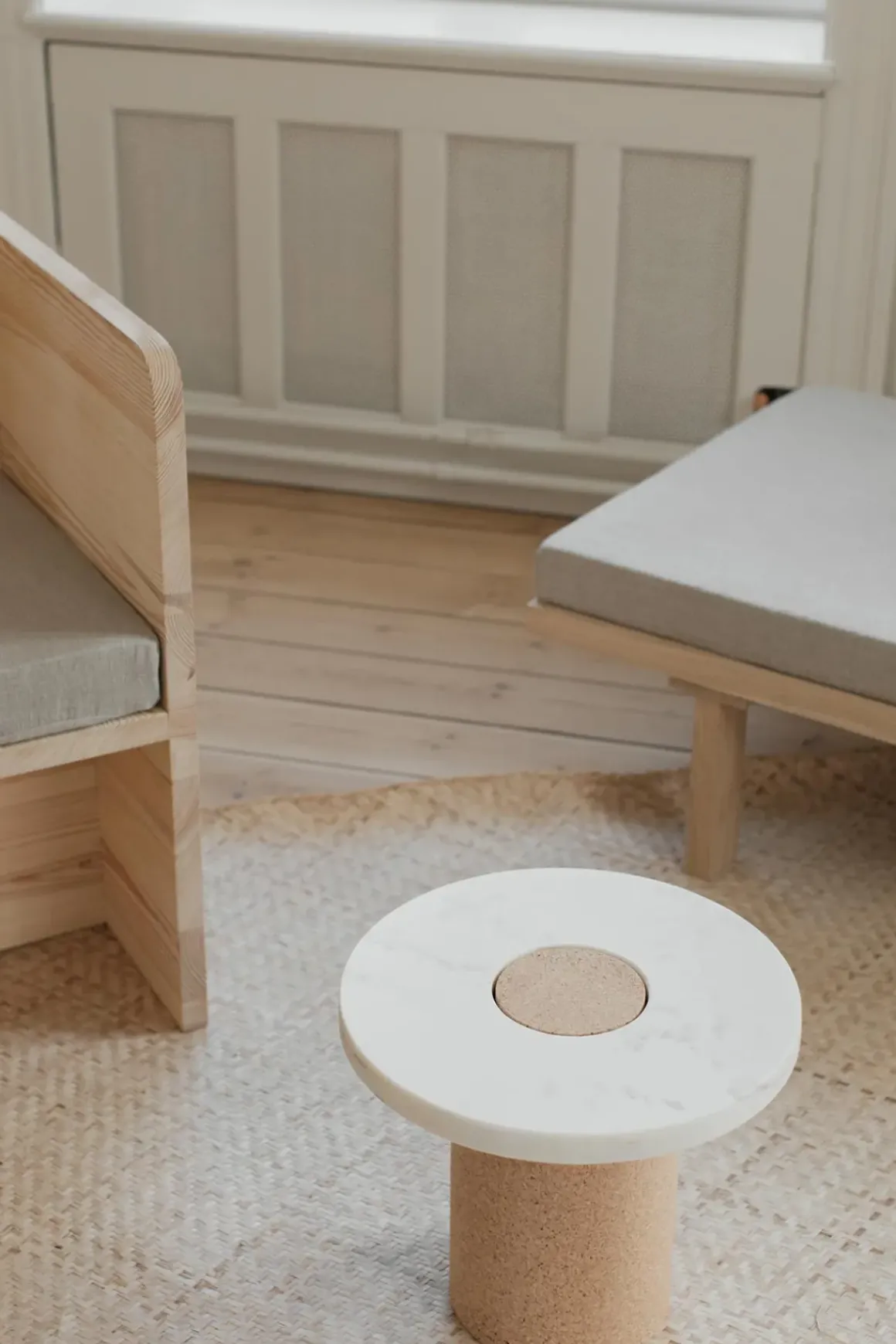 Sintra bord fra danske Frama, designet av Nicholai Wiig-Hansen. Sintra har base i kork og bordplate i hvit marmor, og tilfører et unikt særpreg som stuebord eller sidebord. Bærekraftig og luksuriøst – vi elsker kontrasten i materialene! Hardt og mykt, naturlig kork og hvit, eksklusiv marmor i skjønn forening. På grunn av de naturlige materialene, er hvert bord unikt. Sintra finnes i to størrelser og med hvit eller sort marmorbordplate.