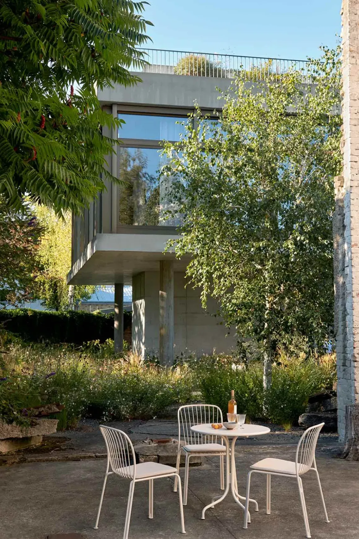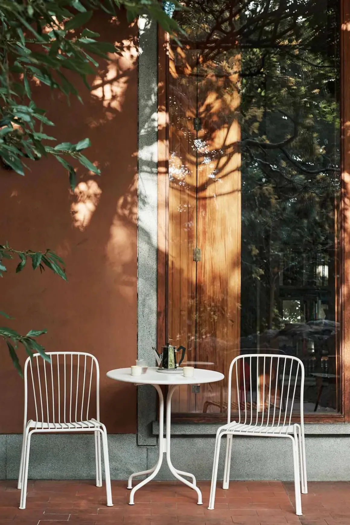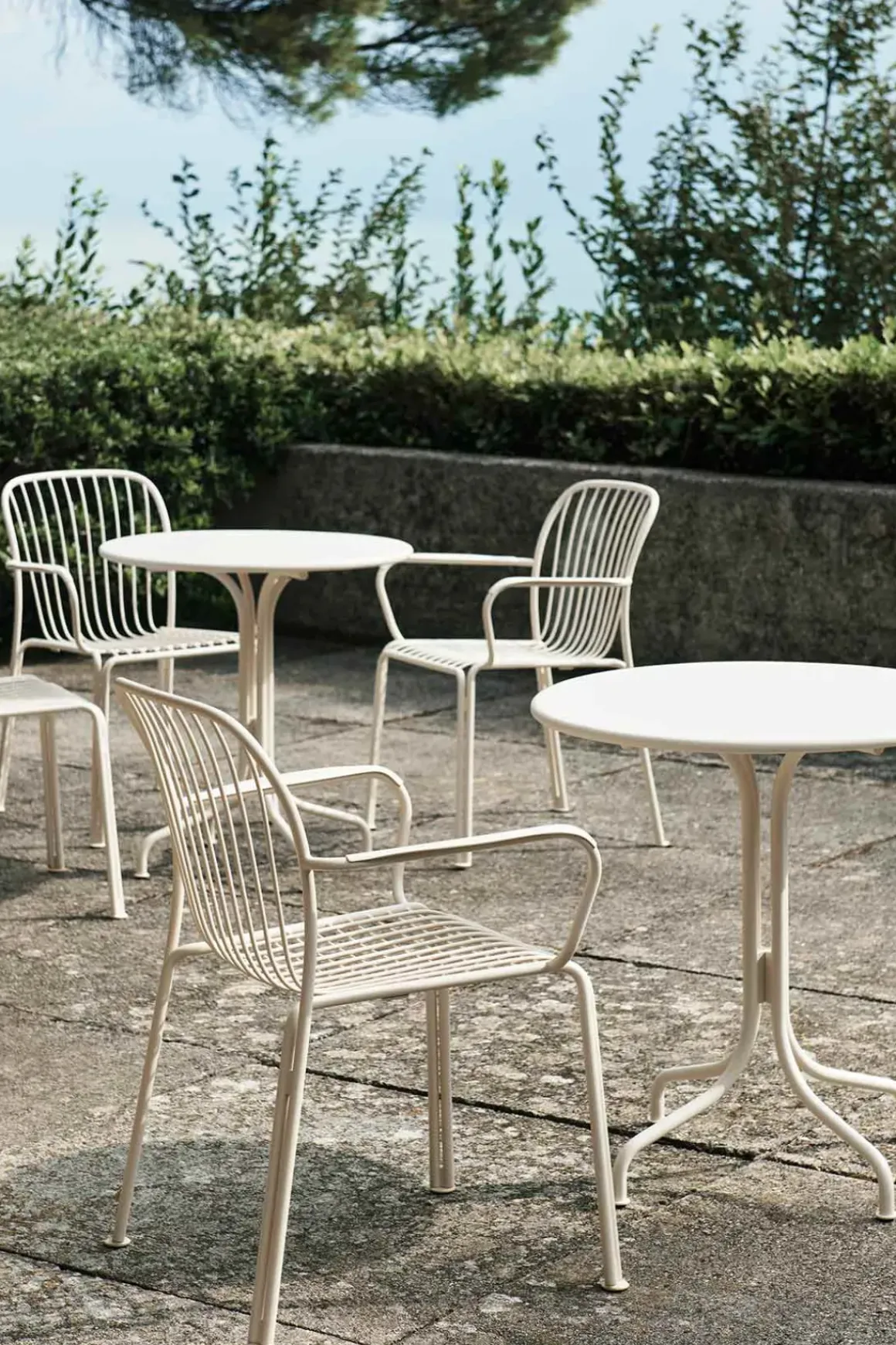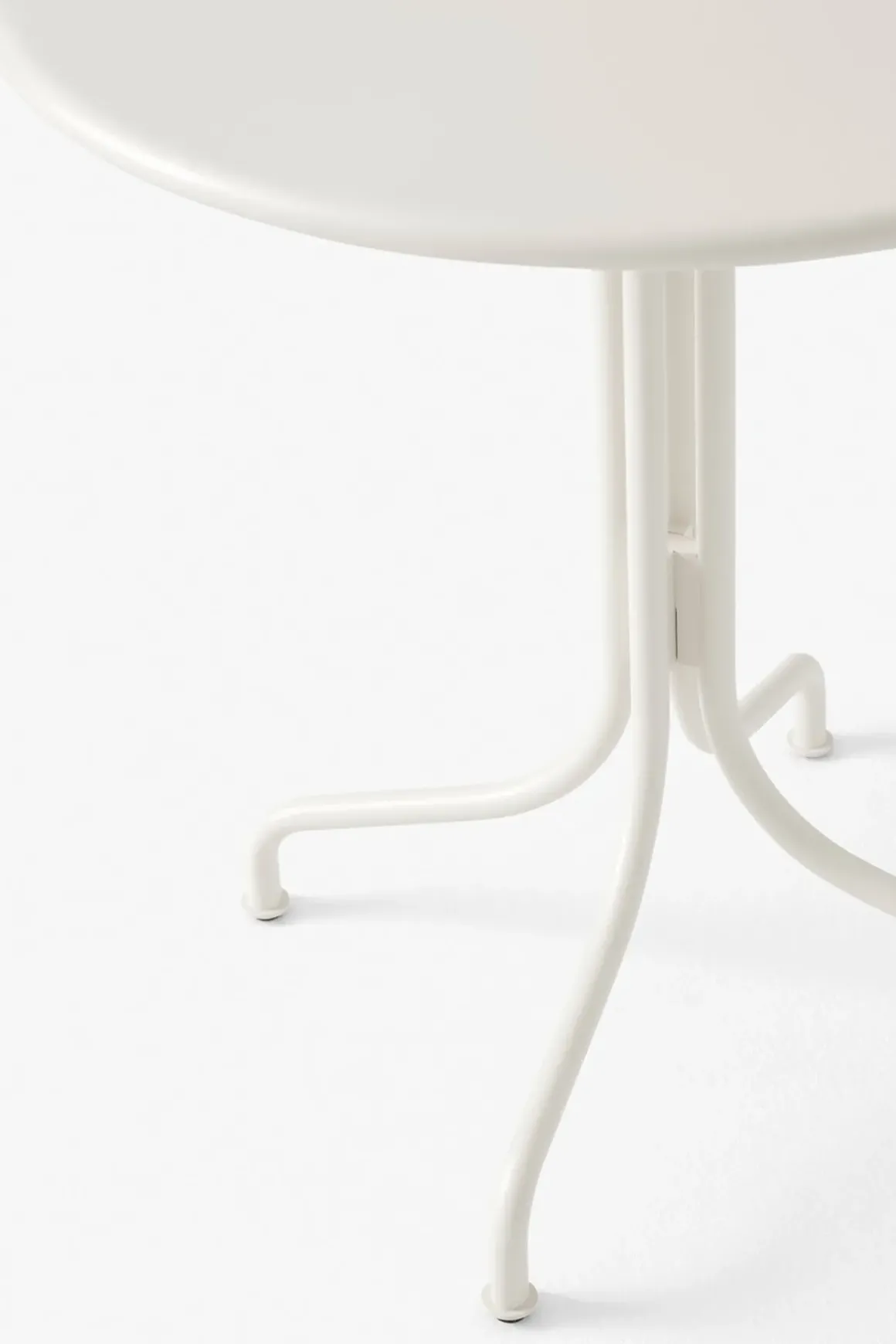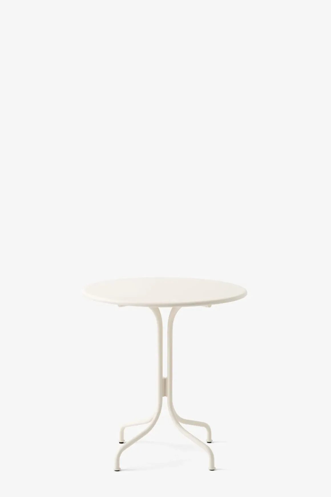 Thorvald kafébord fra danske u0026amp;Tradition, designet av anerkjente Space Copenhagen. Thorvald er laget av pulverlakkert stål og kommer i sort, grønn og elfenbenshvit. Bena er bøyd og hetter sveiset på hver ende og så blir bordplaten spunnet på en metallplate og deretter sveiset sammen. Begge deler blir deretter galvanisert og pulverlakkert. Thorvald kan enkelt kombineres med andre typer utemøbler eller du kan komplettere med stoler i samme serie for en helhetlig look til uteplassen.