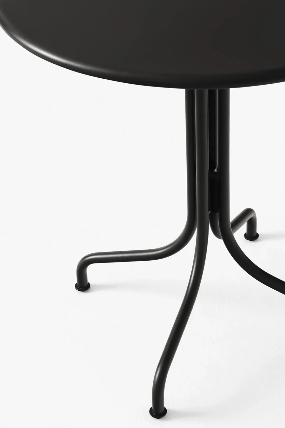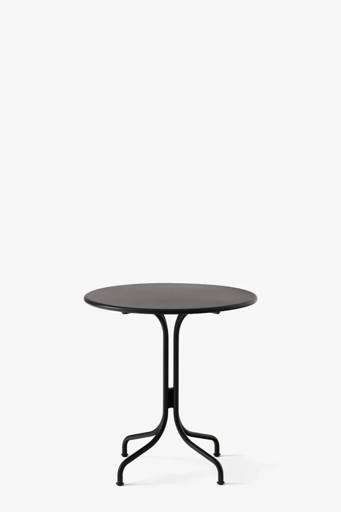 Thorvald kafébord fra danske u0026amp;Tradition, designet av anerkjente Space Copenhagen. Thorvald er laget av pulverlakkert stål og kommer i sort, grønn og elfenbenshvit. Bena er bøyd og hetter sveiset på hver ende og så blir bordplaten spunnet på en metallplate og deretter sveiset sammen. Begge deler blir deretter galvanisert og pulverlakkert. Thorvald kan enkelt kombineres med andre typer utemøbler eller du kan komplettere med stoler i samme serie for en helhetlig look til uteplassen.