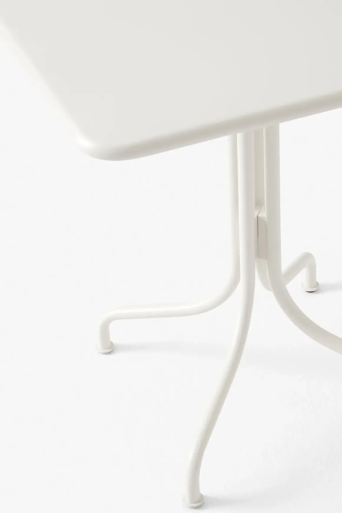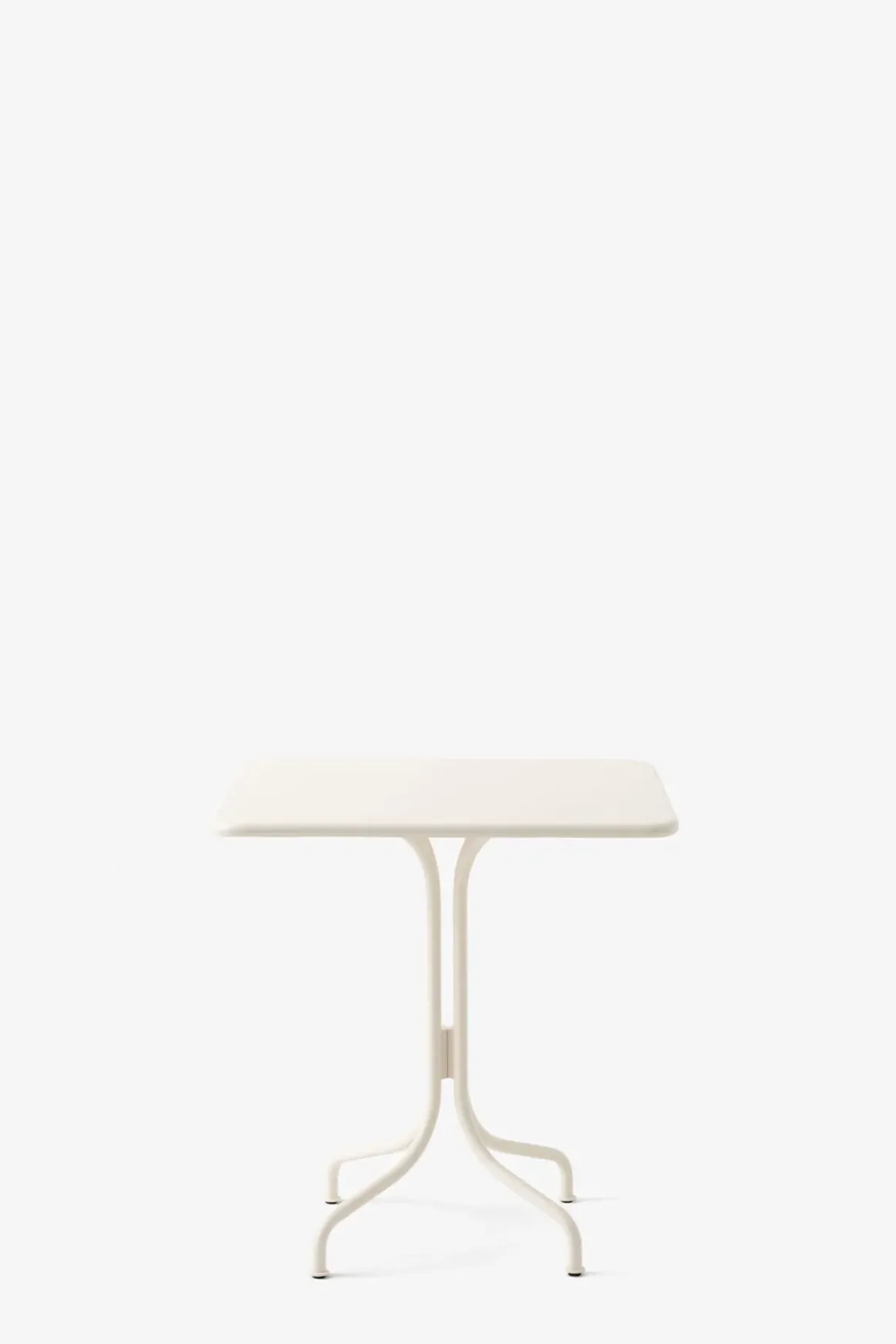 Thorvald bord fra danske u0026amp;Tradition, designet av anerkjente Space Copenhagen. Thorvald er laget av pulverlakkert stål og kommer i sort, grønn og elfenbenshvit. Bena er bøyd og hetter sveiset på hver ende og så blir den firkantede bordplaten bøyd og stemplet i form. Begge deler blir deretter galvanisert og pulverlakkert. Thorvald kan enkelt kombineres med andre typer utemøbler eller du kan komplettere med stoler i samme serie for en helhetlig look til uteplassen.