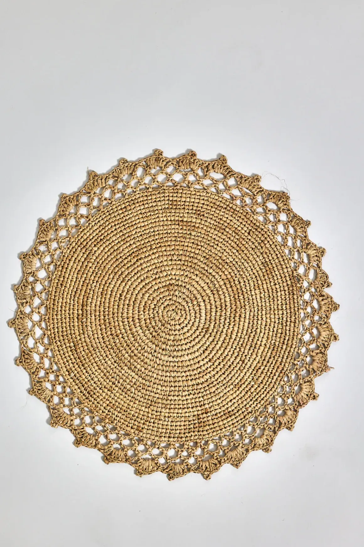 Bordbrikke håndlaget i 100% raffia i Madagaskar. Bordbrikken har en dekorativ flettet kant, som tilfører spisebordet ditt en naturlig sjarm og personlighet. Perfekt for å skape en varm og innbydende atmosfære! Raffia, som er et naturlig fiber utvunnet fra palmeblader, gir brikken en autentisk og organisk følelse. Hver brikke bærer med seg en sjarm som reflekterer dyktigheten til de lokale håndverkerne, noe som gjør den ekstra spesiell. Enkel å rengjøre med en fuktig klut.