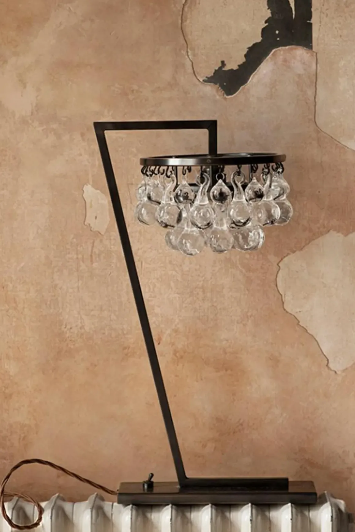 Si hei til verdens mest fantastiske mini-lysekrone, bordlampen Arctic Pear Table Lamp fra Ochre. Lampen er en del av Arctic Pear-lampeserien og består av en ramme i patinert bronse eller polert nikkel med rader av vakre, hengende dråper i klart eller kvikksølvgrått glass. Serien har et bredt utvalg av taklamper med ulike former og størrelser og er også tilgjengelig som vegglampe. Bordlampen har av/på knapp på lampefoten og en vakker ledning på 2m med tvinnet silke. Et virkelig blikkfang, men samtidig klassisk og tidløs.
