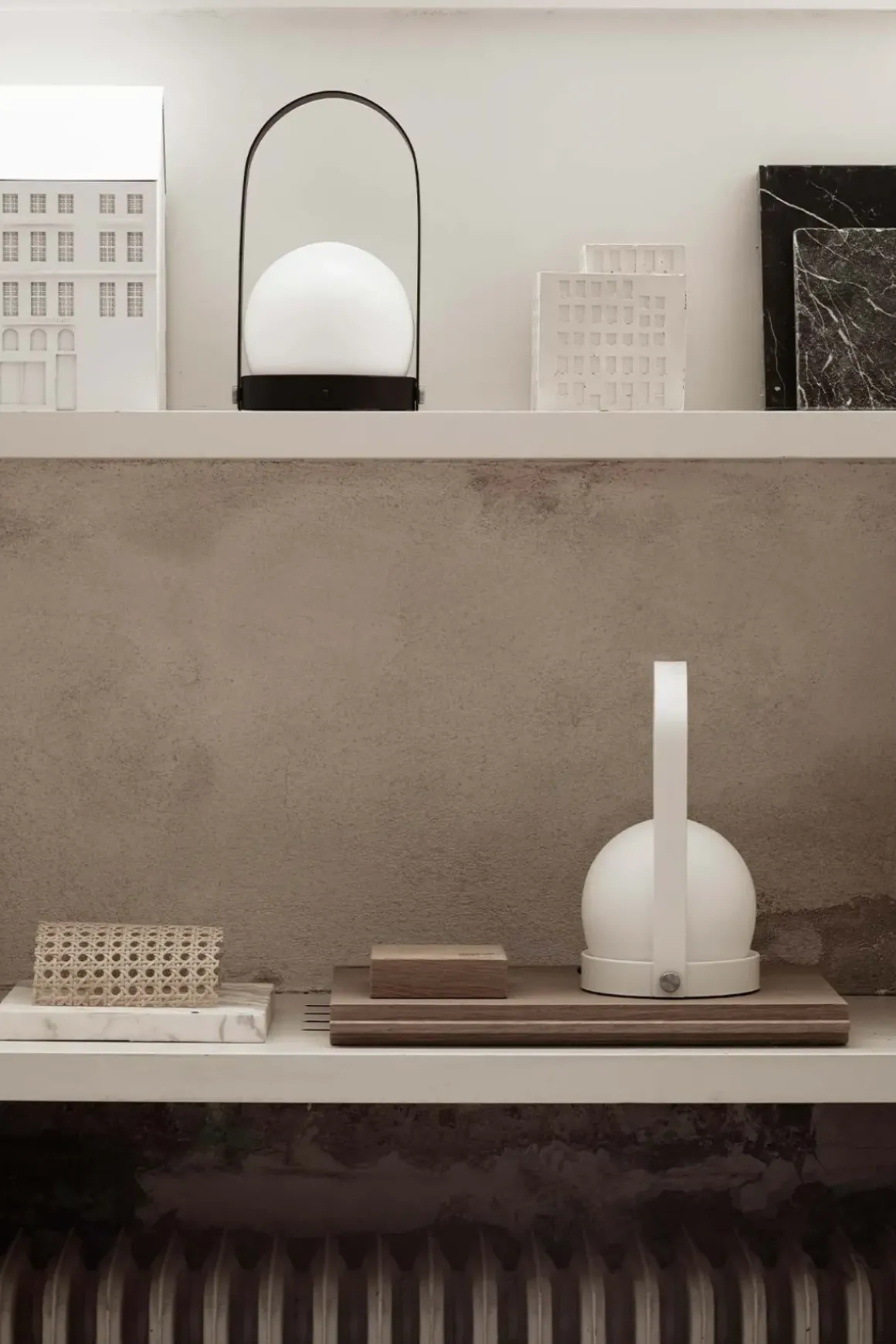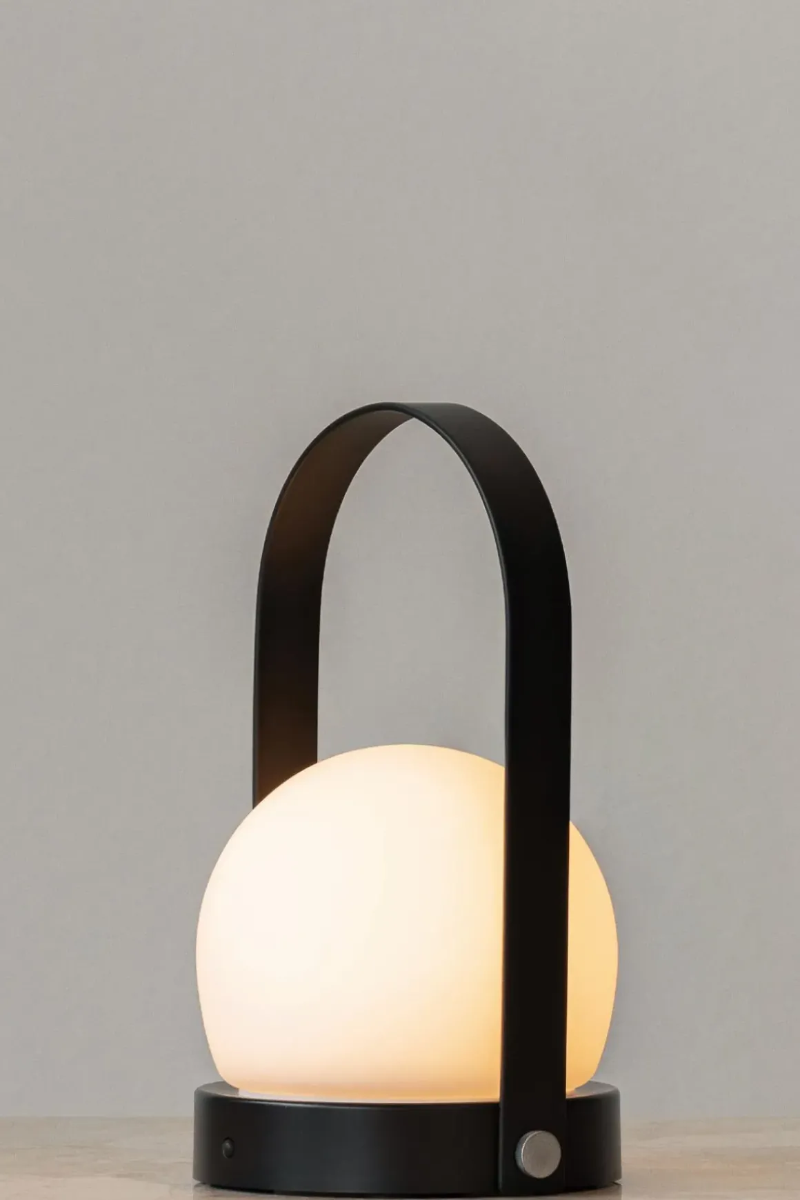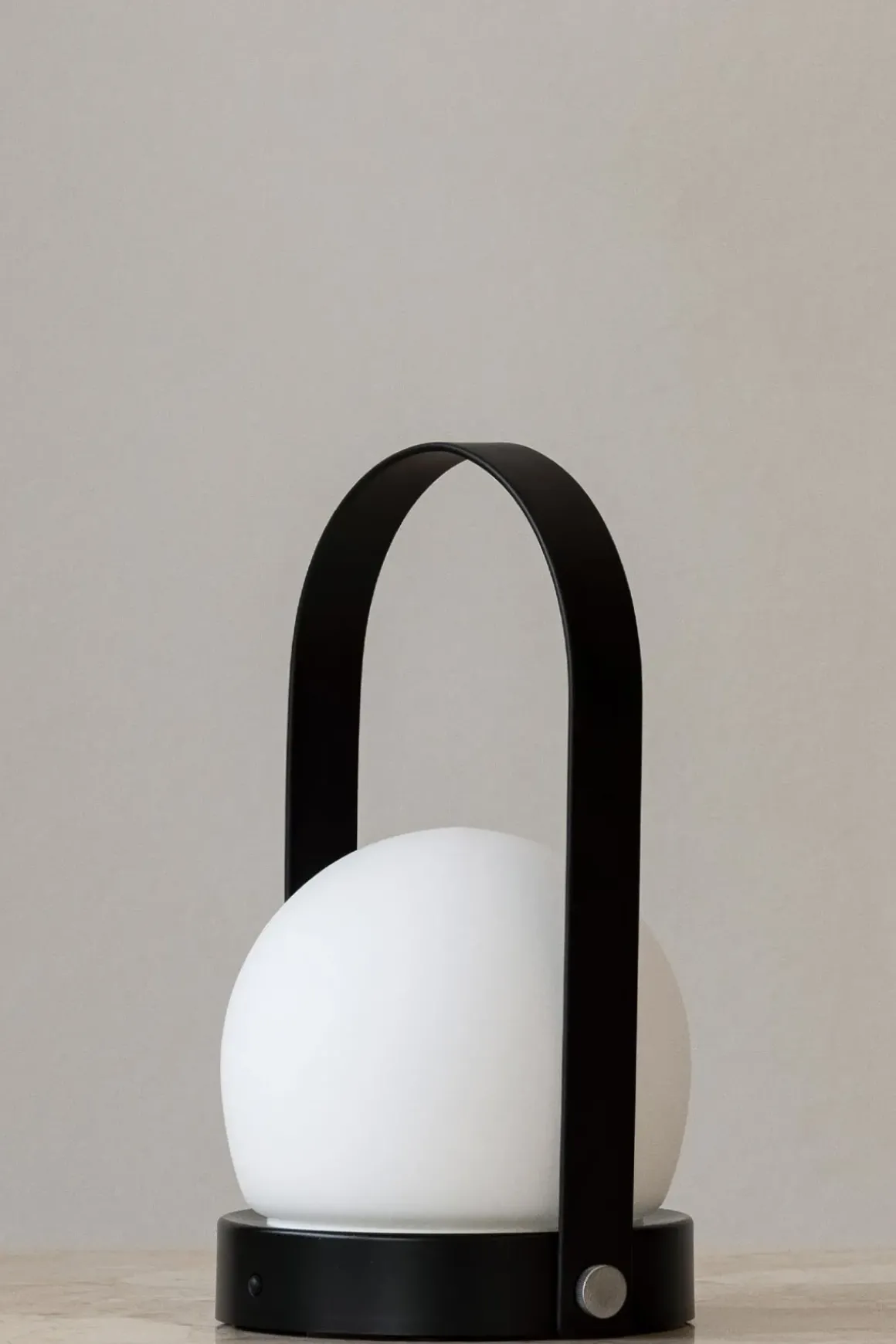 Vi elsker bærbare lamper, og en favoritt er denne Carrie Portable IP44 LED-lampen som er laget for å kunne brukes utendørs! Med sitt praktiske håndtak og kuppel i opalglass som ligger plassert i den kurv-lignende basen av plast, kan du ta denne med hvor som helst. Lampen er naturligvis trådløs og kan lades opp med den medfølgende USB-kabelen. Lyset er spesielt utviklet for å gi hyggelig stemning og har step-dim med tre lysstyrker. Når den er fulladet lyser lampen i ca 10 timer på den høyeste settingen. Bruk lampen uansett hvor du er – flytt den fra pulten til nattbordet, ta den med på kveldspiknik, hytta, eller ut på terrassen. Lampens håndtak kan også svinges slik at lampen kan henges på veggen, eller du kan ta det helt av og kun bruke lyskuppelen. Designet av Jonas Bjerre-Poulsen og Kasper Rønn fra Norm Architects.