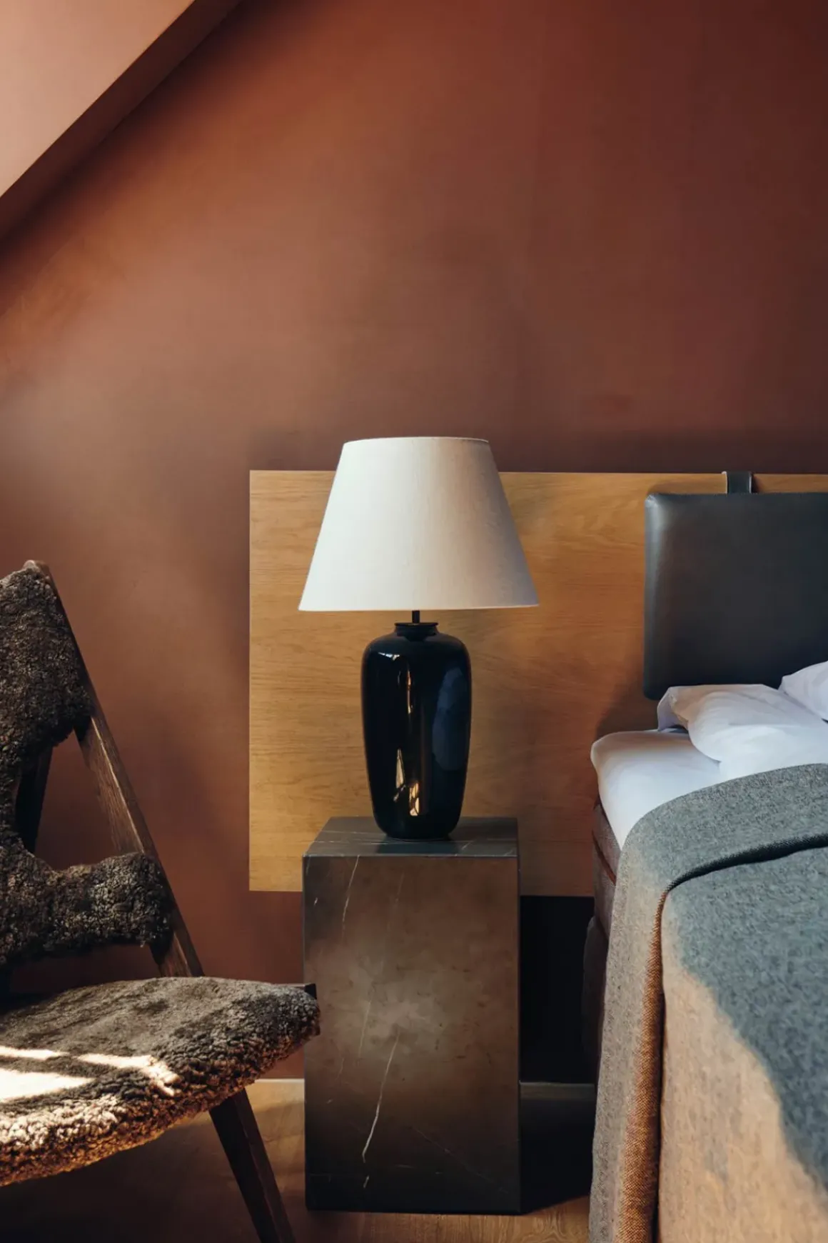 Torso bordlampe er designet av Krøyer-Sætter-Larsen. Designet er tidløst og egner seg til enhver setting. Den langstrakte basen er støpt av svartglasert steintøy og langstrakt for et diskret, men skulpturelt uttrykk. Skjermen i lin sprer lyset taktilt for å skape en god atmosfære i rommet. Berøringsdimmeren i messing er prikken over ien.