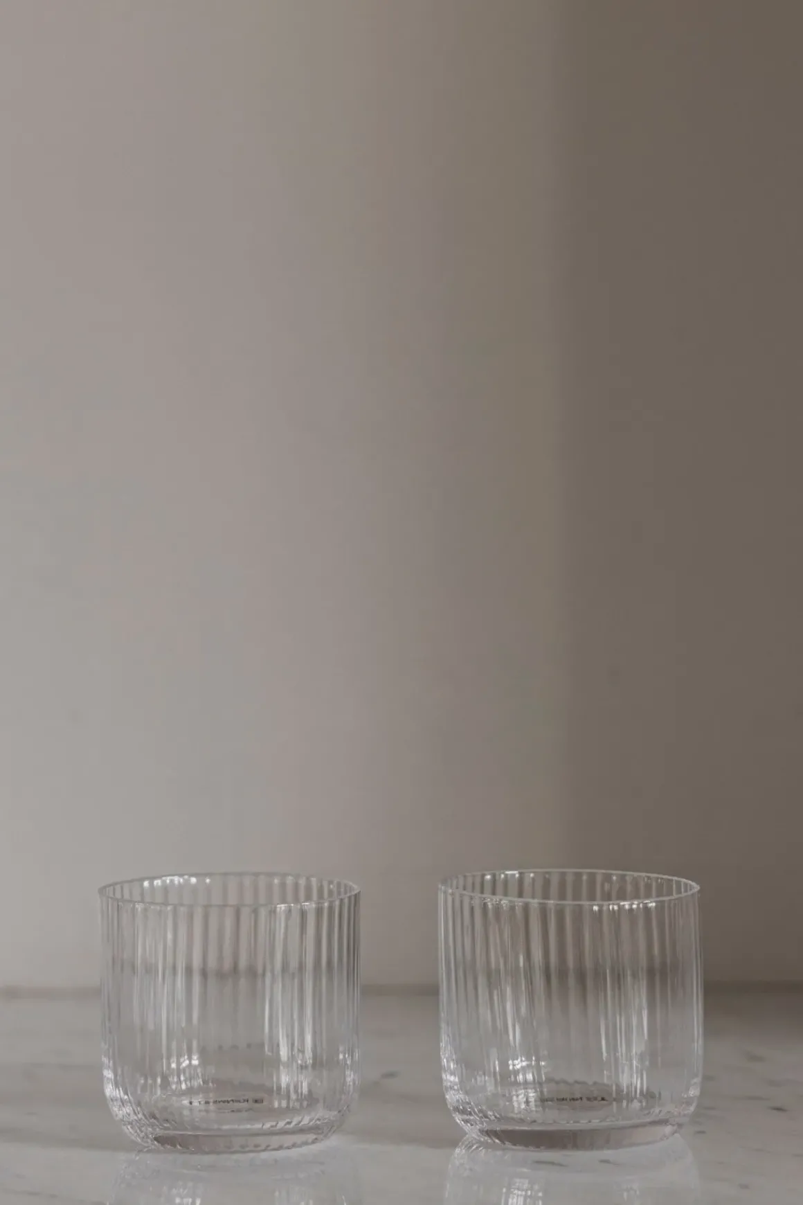 2pk med drikkeglass i riflet glass fra det svenske merket Ernst. Bruk dem til vann, saft, limonade eller andre leskende drikker. Riflet glass og et