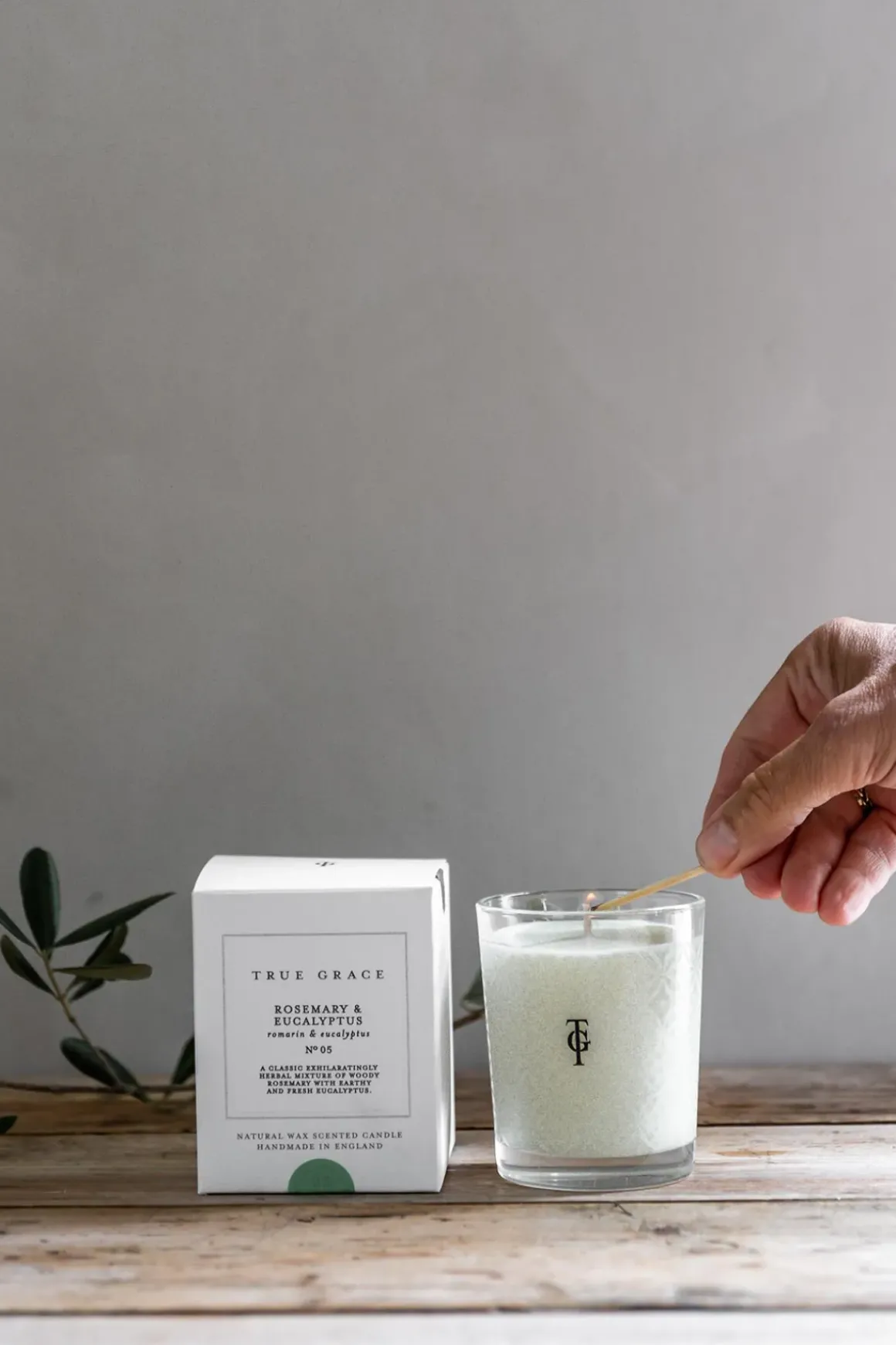 Klassisk, håndlaget duftlys fra engelske True Grace. Rosemary u0026amp; Eucalyptus er inspirert av livet på landet og er en del av deres «Village»-serie. Duftlyset er 100% naturlig og laget av en unik blanding av fornybar vegetabilsk voks og naturlig voks, med veke i ren bomull. Duftlyset kommer i en vakker glasskrukke med luksuriøs emballasje. Dette friske og urteduftende lyset har noter av røkelse, rosmarin og eukalyptus, og er vel det nærmeste man kommer en «Bolina-duft» da denne har vært fast inventar i mange år allerede, og nærmest sitter i veggene. Siden lysene kun er laget på naturlig voks, gir de ikke hodepine slik andre (rimeligere) varianter har en tendens til å gjøre. Lysene brenner i hele 40 timer. Vårt tips er å brenne lyset kun til duften har satt seg i rommet, slukk deretter flammen, så varer lyset enda lenger. Husk å trimme veken etter bruk slik at den ikke er lenger enn 0,5 cm, så unngår man sot inni glasset. True Grace har vært på Bolina i en årrekke og er en favoritt blant oss og våre kunder.