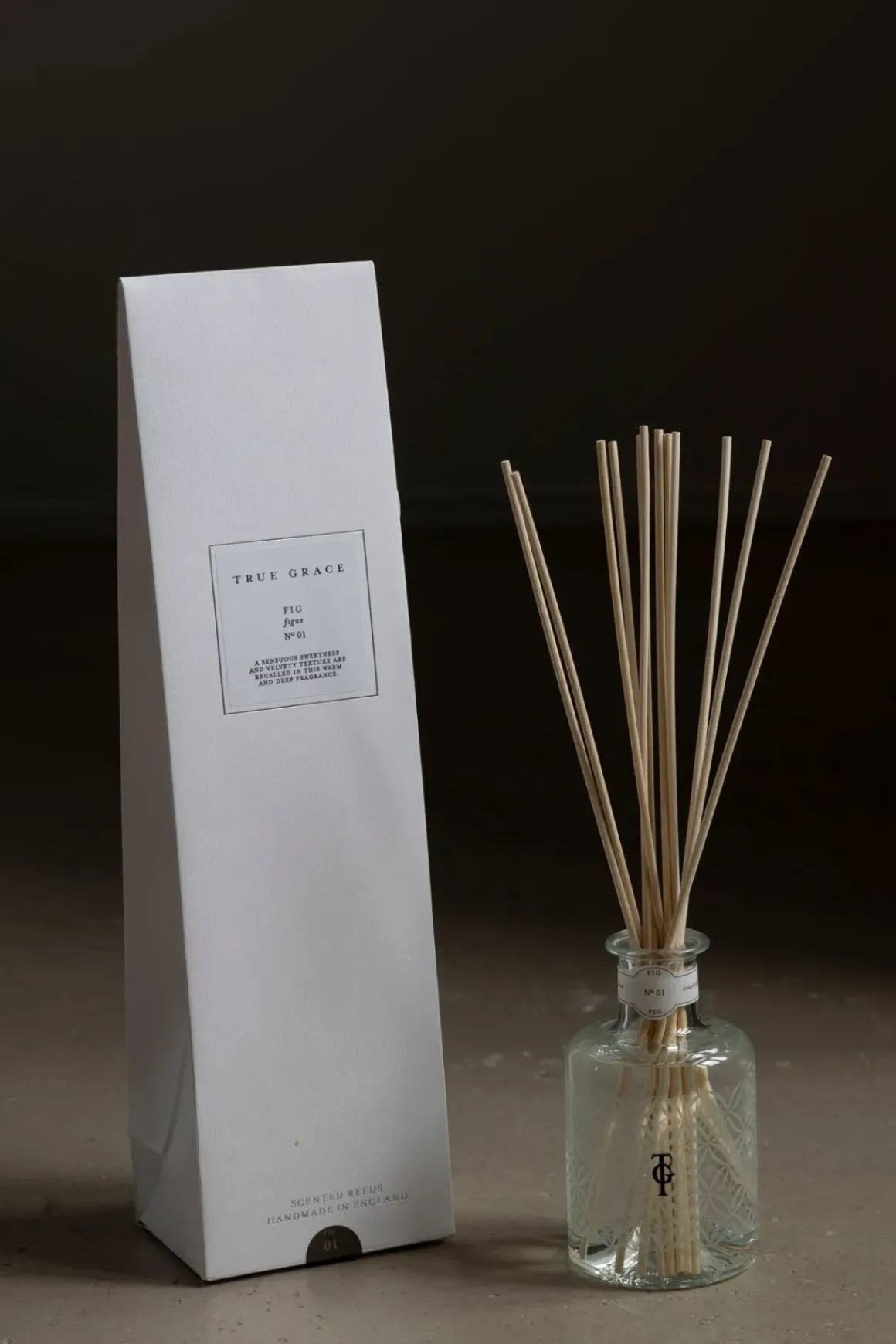Luksuriøse duftpinner fra engelske True Grace. Fig er inspirert av livet på landet og er en del av deres «Village»-serie. En fruktig duft med noter av sedertre, søt fiken og kassis. Dette er en super venninnegave, innflytningsgave eller litt hverdagsluksus til deg selv. Kommer i en nydelig apotekerglassflaske med trepinner som varer i opptil ti uker.