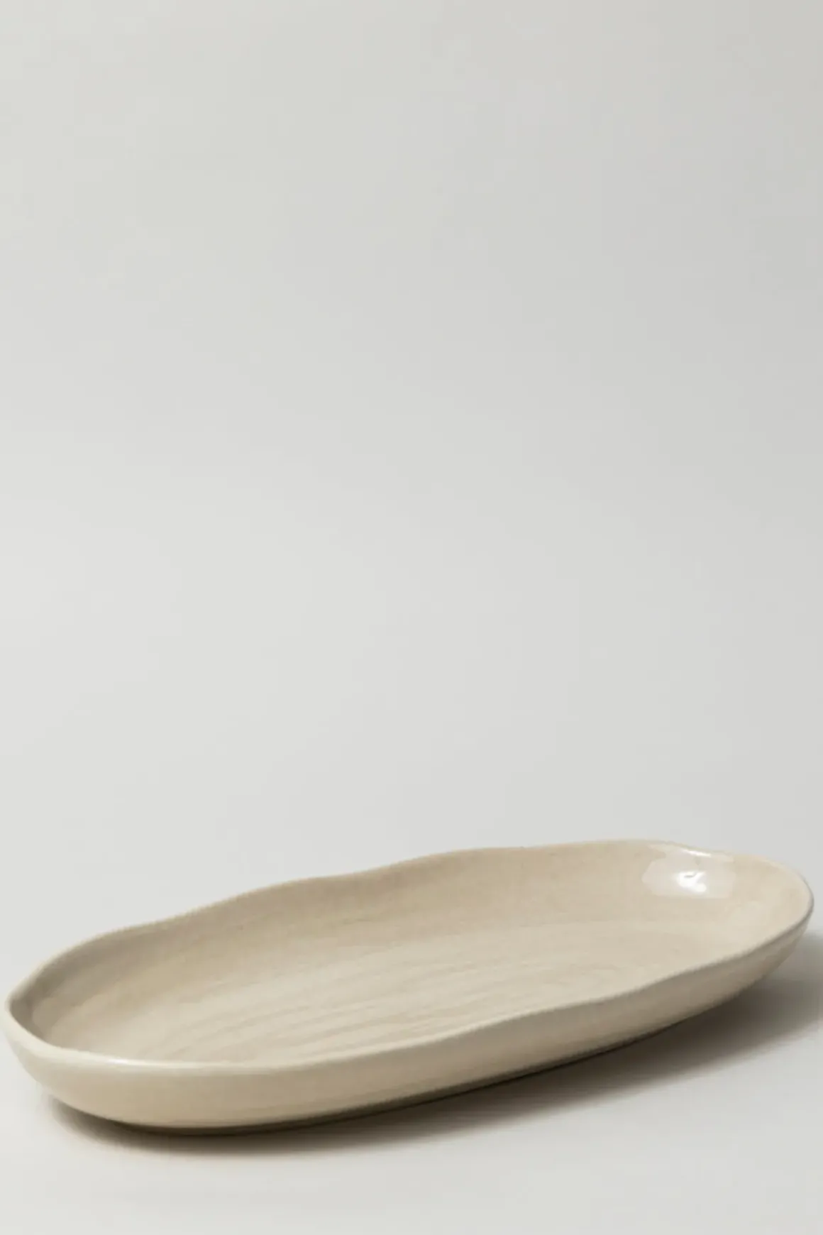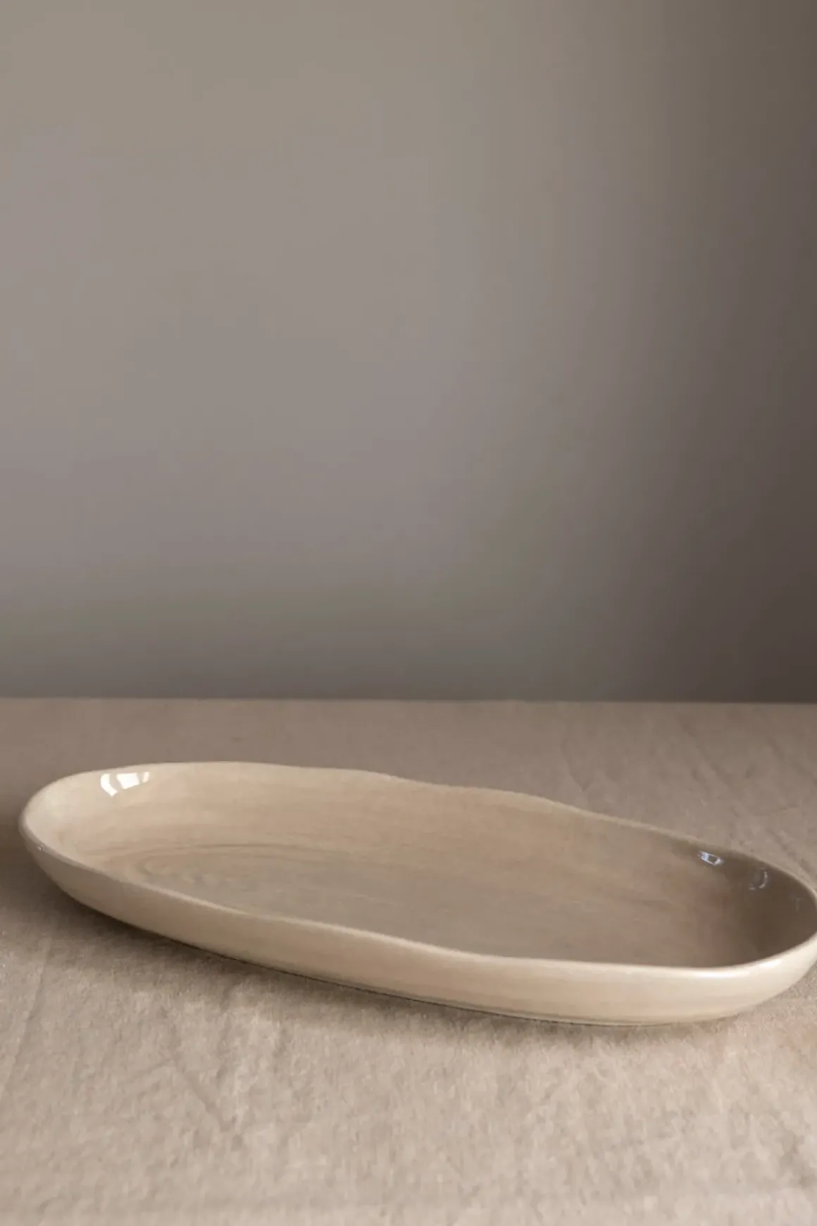 Ovalt serveringsfat i beige porselen fra svenske Bruka Design. Fatet er en del av Capri-serien til Bruka. Perfekt til servering av tapas, deilige pastaretter og salater! Fatet kan vaskes i maskin og tåler mikrobølgeovn.