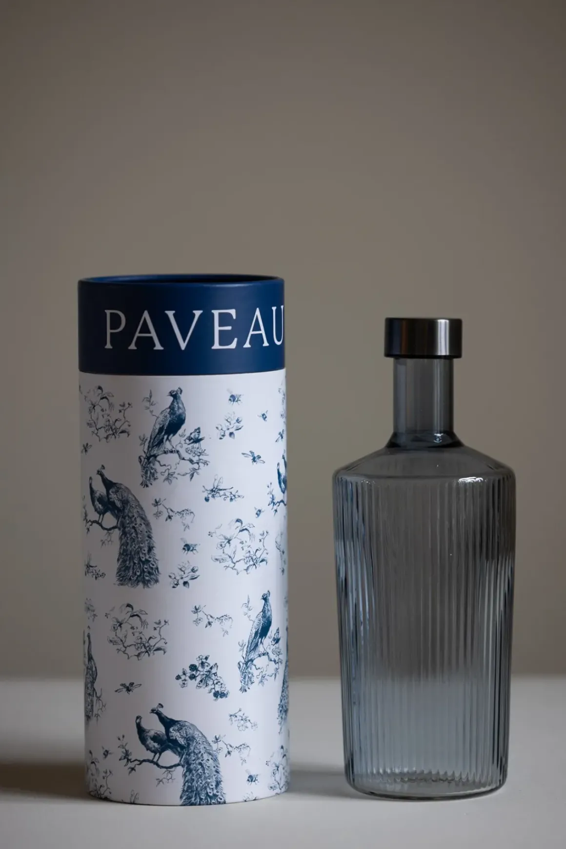 Vannflaske/vannkaraffel som rommer 1,25 liter produsert av designeren Isabelle Paveau. Den riflet overflaten gjør at flasken skiller seg ut fra andre sodastream/vannflasker på markedet. Håndblåst glass. Perfekt vert/vertinnegave f.eks.