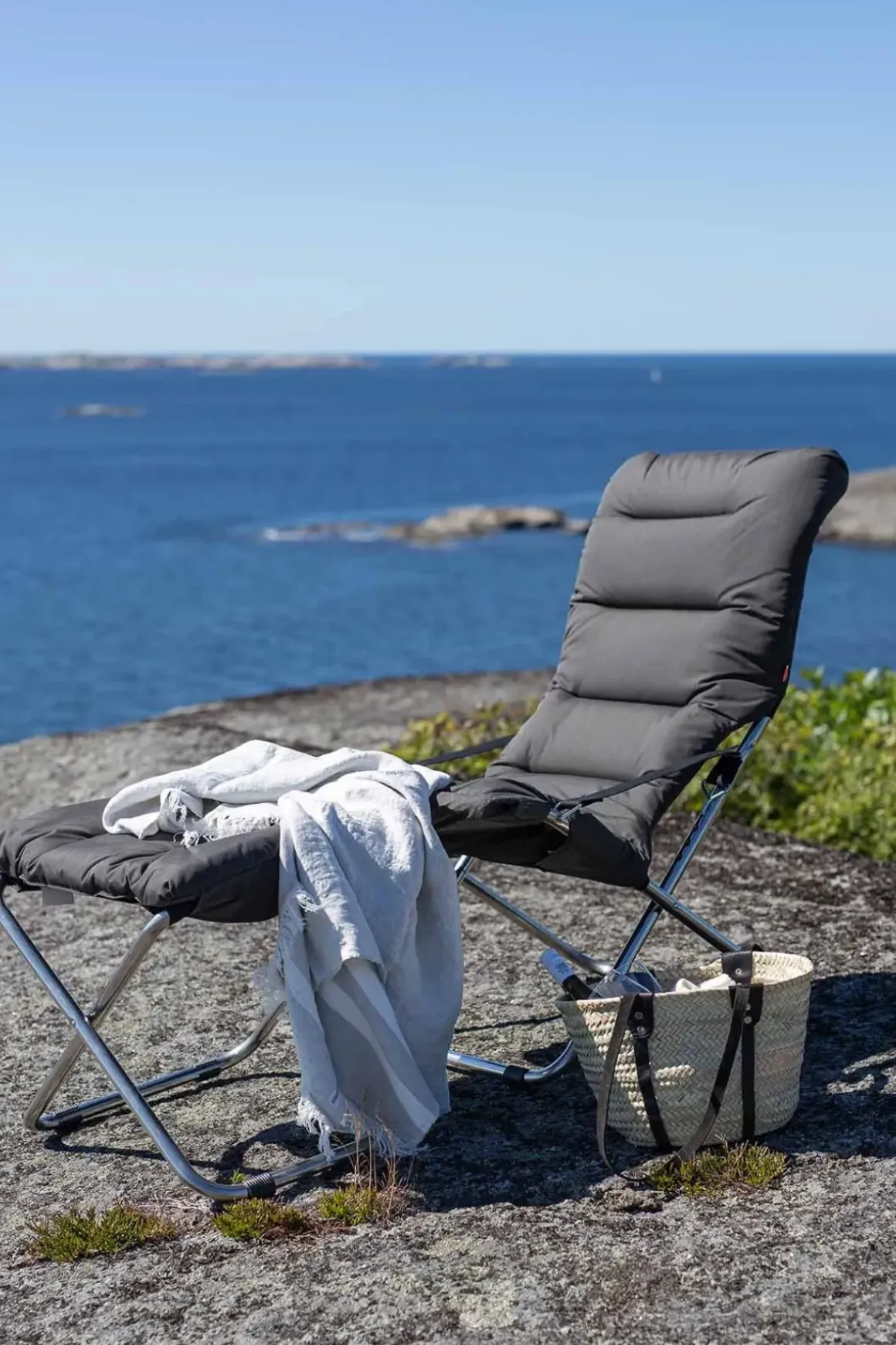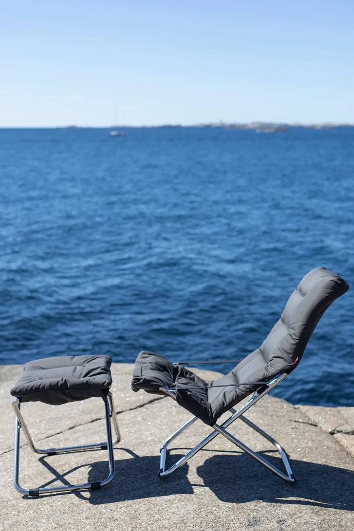 Chico Soft i fargen antrasitt er en praktisk sammenleggbar krakk som passer perfekt til solstolen Fiesta Soft fra samme merke. Minimalistisk design av Francesco Favagrossa, med behagelig pute som gir deg ultimat sittekomfort. Bruk Chico Soft som fotskammel eller ekstra sitteplass. Krakken er i vedlikeholdsfri aluminium og olefine dralon, et værbestandig og praktisk materiale, supert til utendørs bruk. Chico Soft finnes i flere farger.