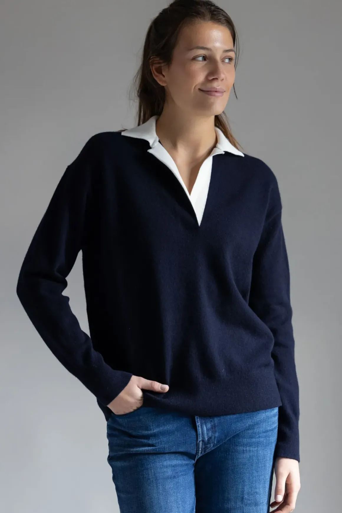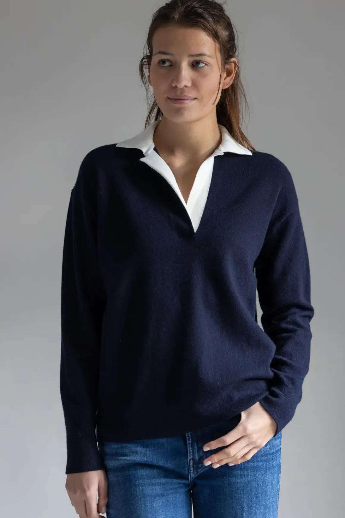 Polo-genser fra Vince, inspirert av rugby med en kontrastkrage som tilfører en subtil sporty detalj. Den litt oversized passformen gir en avslappet silhuett, mens den luksuriøse materialblandingen sørger for en myk og glatt følelse mot huden. Ribbestrikkede kanter gir en pen avslutning, og det tidløse designet gjør genseren lett å kombinere med både skjørt og bukser. Genseren er et allsidig plagg som kombinerer en sporty silhuett med et tidløst design.