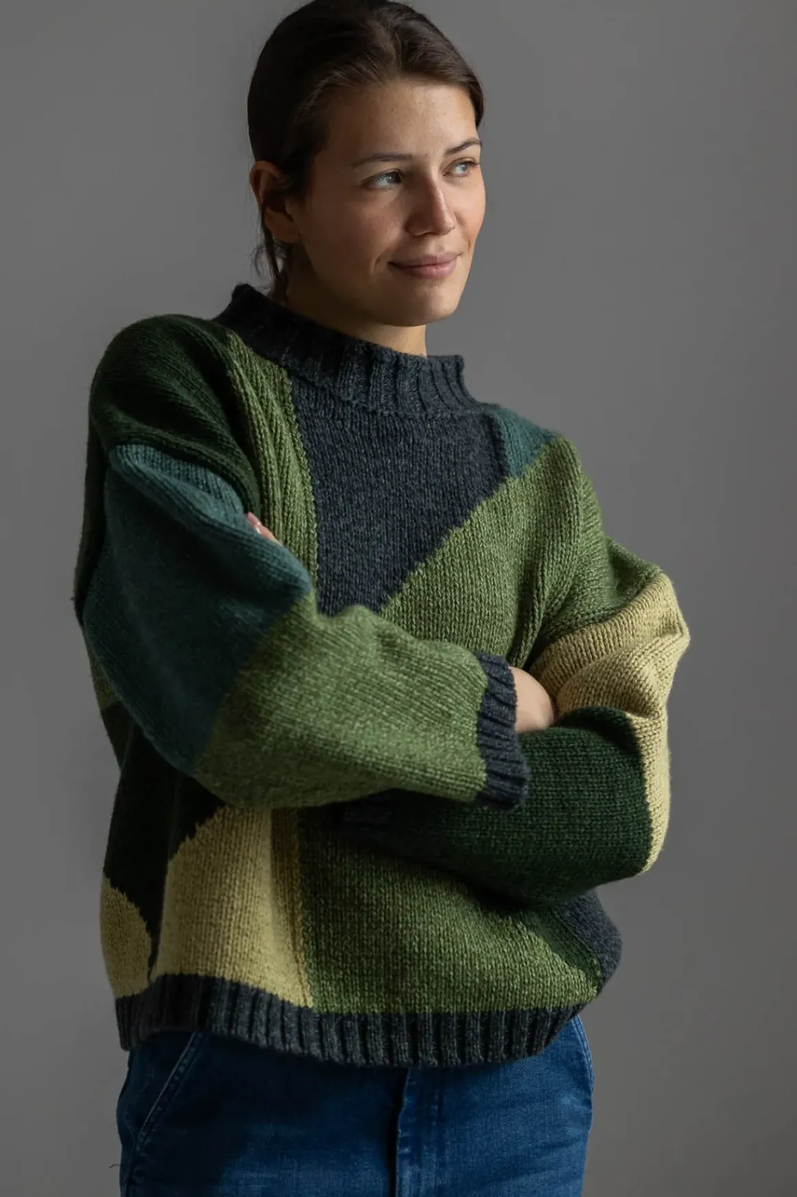 En tykk og varm genser fra Toast, laget i en blanding av ull og organisk bomull. Det fargerike blokkdesignet er inspirert av vintage drager og gir plagget et unikt preg. Genseren har vide, firkantede ermer og en ribbestrikket crew neck som rammer inn halsen. Ribbekanter på ermer og nederkant gir en gjennomført finish. Perfekt for kjølige dager, enten alene eller som lag-på-lag.