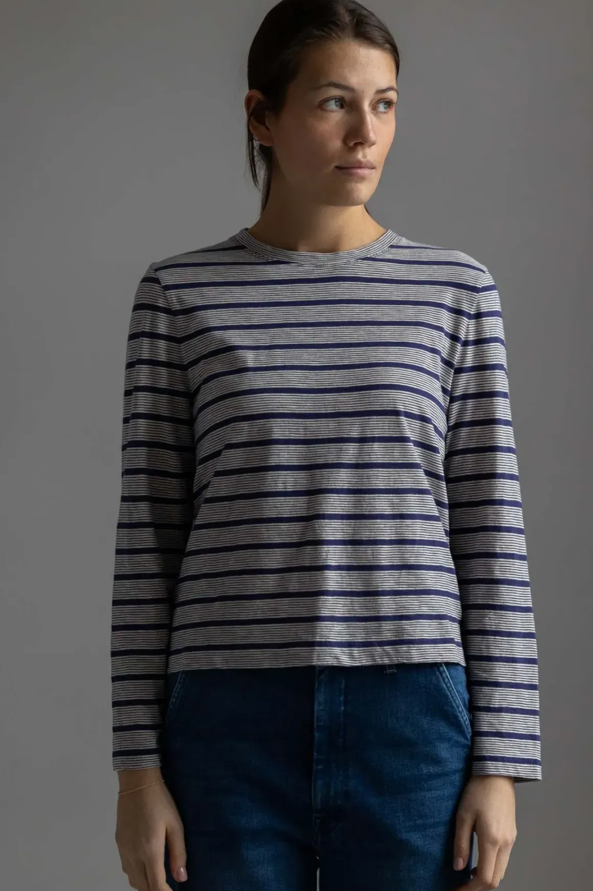 Langermet genser fra Toast. Genseren er laget i myk og lett bomull med en avslappet tekstur som gir et uanstrengt uttrykk. Genseren har rund hals, ermer som når til håndleddet, og avsluttes med tvillingssømmer som en gjennomført detalj. En klassisk genser med et tidløst stripemønster som passer til alt.