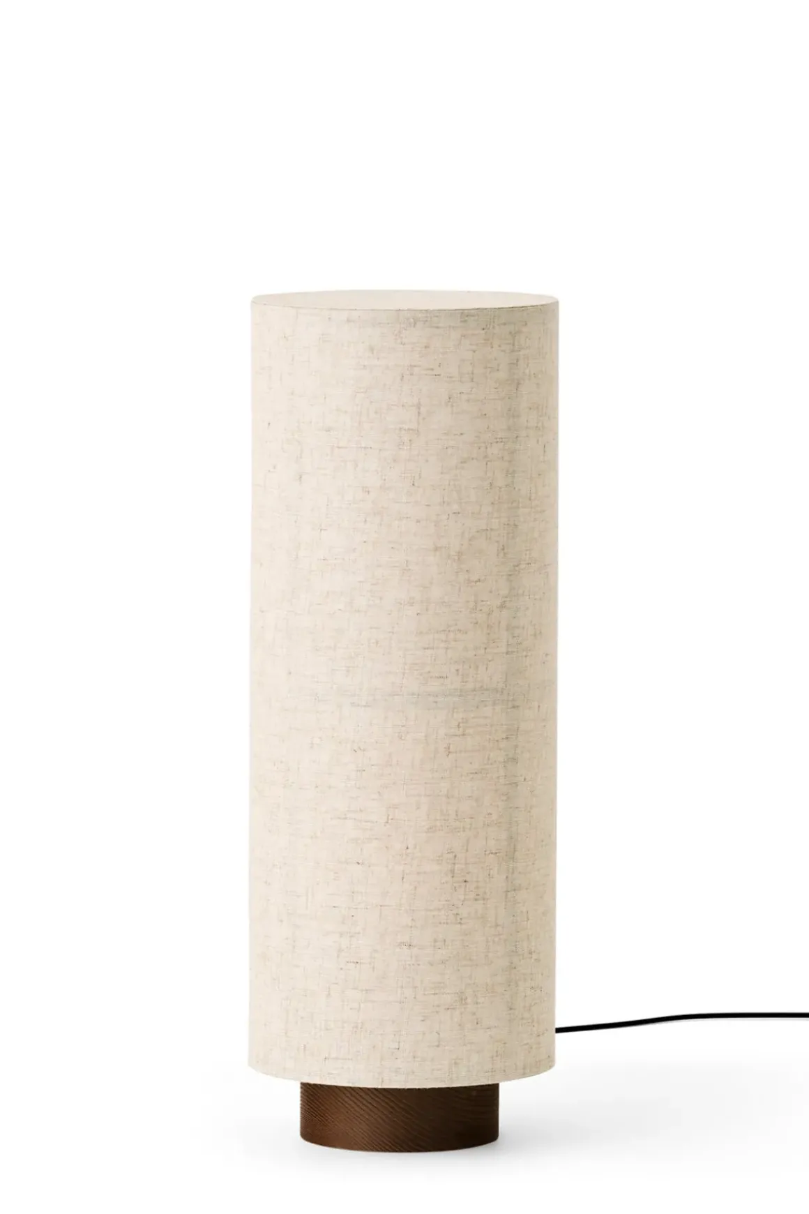 Hashira gulvlampe med beige skjerm og base i beiset eik. Den sylinderformede lampen er inspirert av japansk arkitektur med sitt særegne, men samtidig minimalistiske utseende. Lampeskjermen av lin gir et behagelig diffundert lys. Oval base av beiset eik. Perfekt i stua, på gjesterommet eller ved siden av sengen. Hashira kommer i to fargenyanser; hvit og raw.