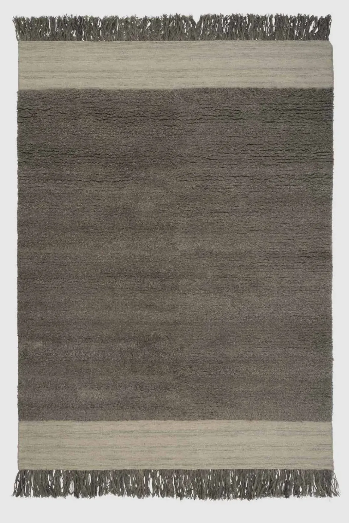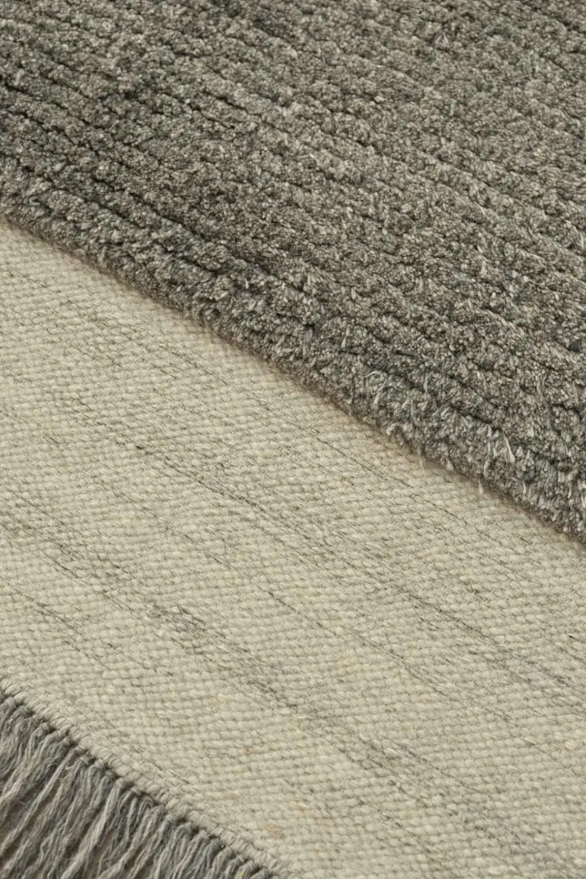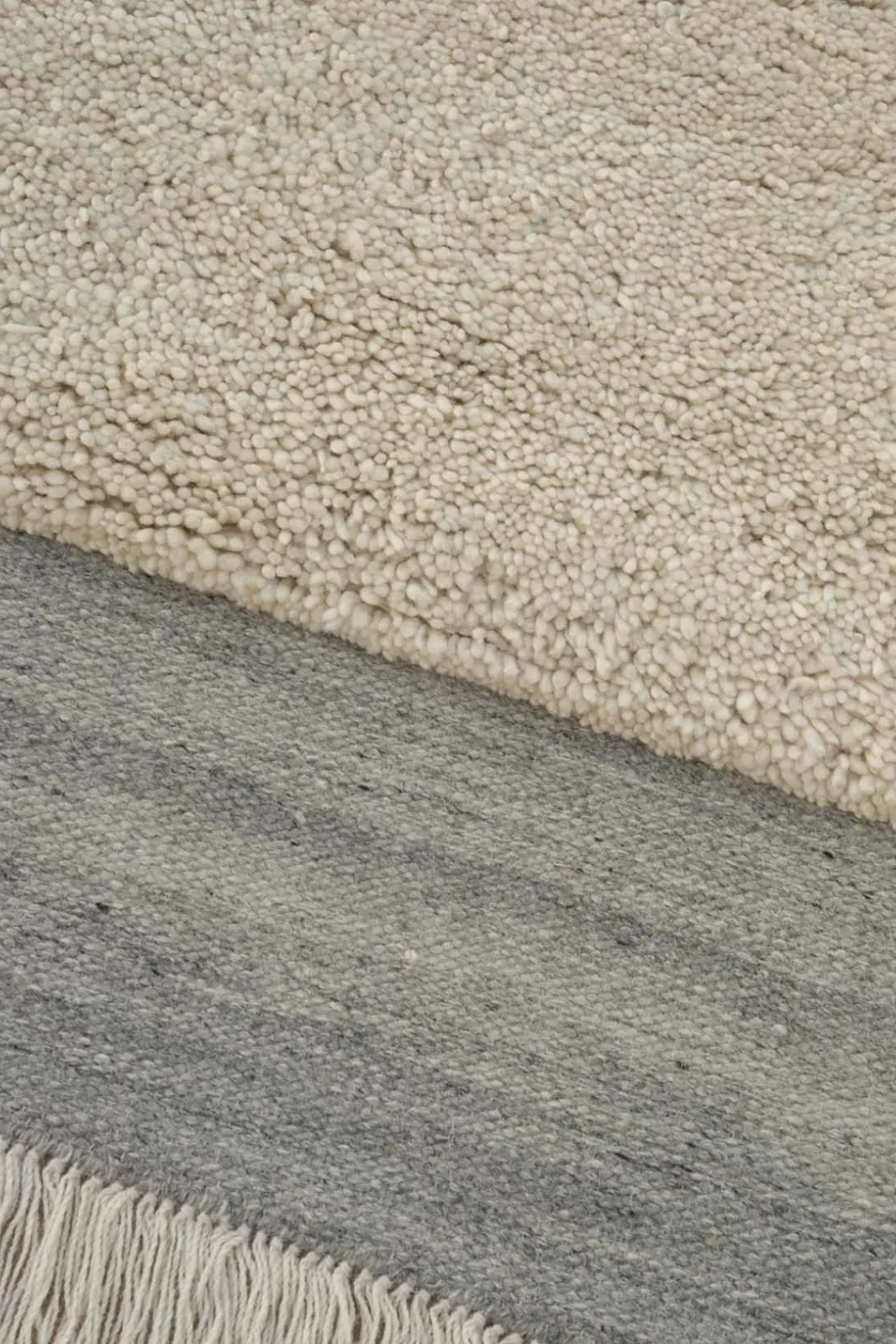 Humble Act gulvteppe fra Linie Design i fargen Stone, designet av Urd Moll Gundermann. Humble Act er håndknyttet med et intrikat håndverk og en forsiktig komposisjon av tonale og strukturelle kontraster som gir et beskjedent, sobert uttrykk. Den tykke, myke luven er innrammet i hver ende av flatvevde seksjoner og lange flytende frynser, og skaper et samspill av dimensjoner og struktur som gir liv til de ufargede garnene. Laget i myk New Zealand ull med en økologisk bomullsrenning – begge materialer valgt for sin holdbarhet og naturlige rustikke skjønnhet. Merk at variasjoner i farge og tekstur kan oppstå mellom partier av garn og fargebad. Uregelmessigheter kan oppstå som følge av den håndlagde prosessen, men dette er noe av det som gjør teppene ekstra vakre og taktile! Humble Act finnes i fargene Stone og Ivory. Kom innom butikken for å ta en nærmere titt på farger og materialprøver.
