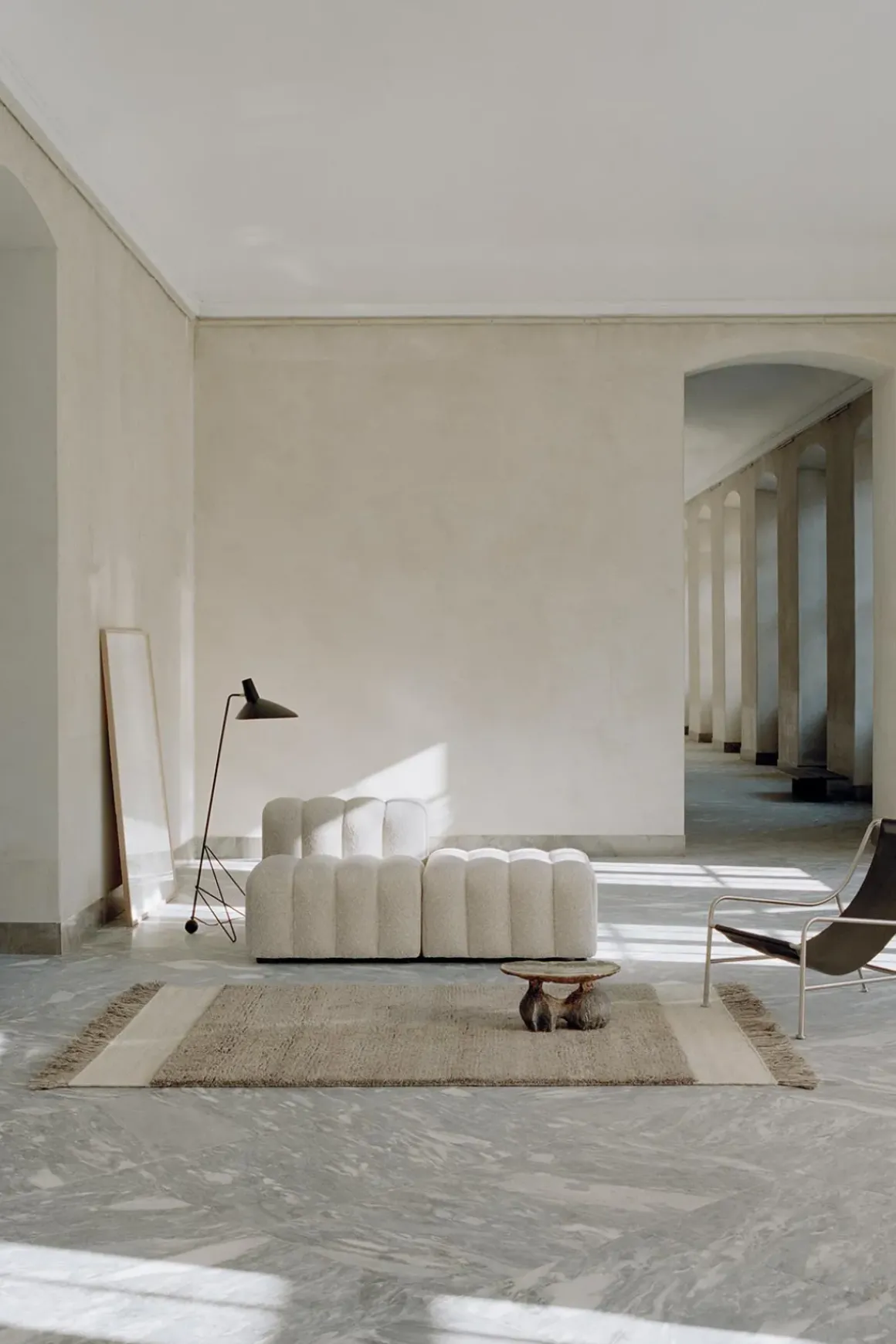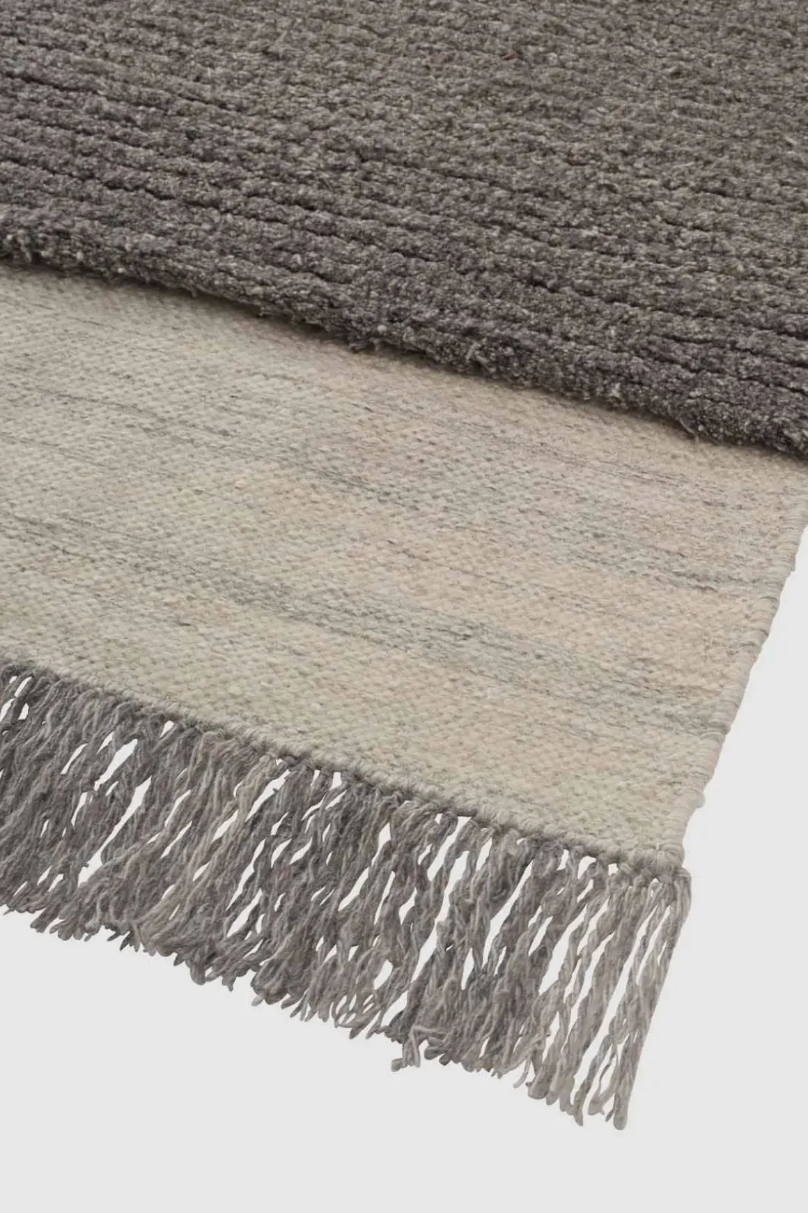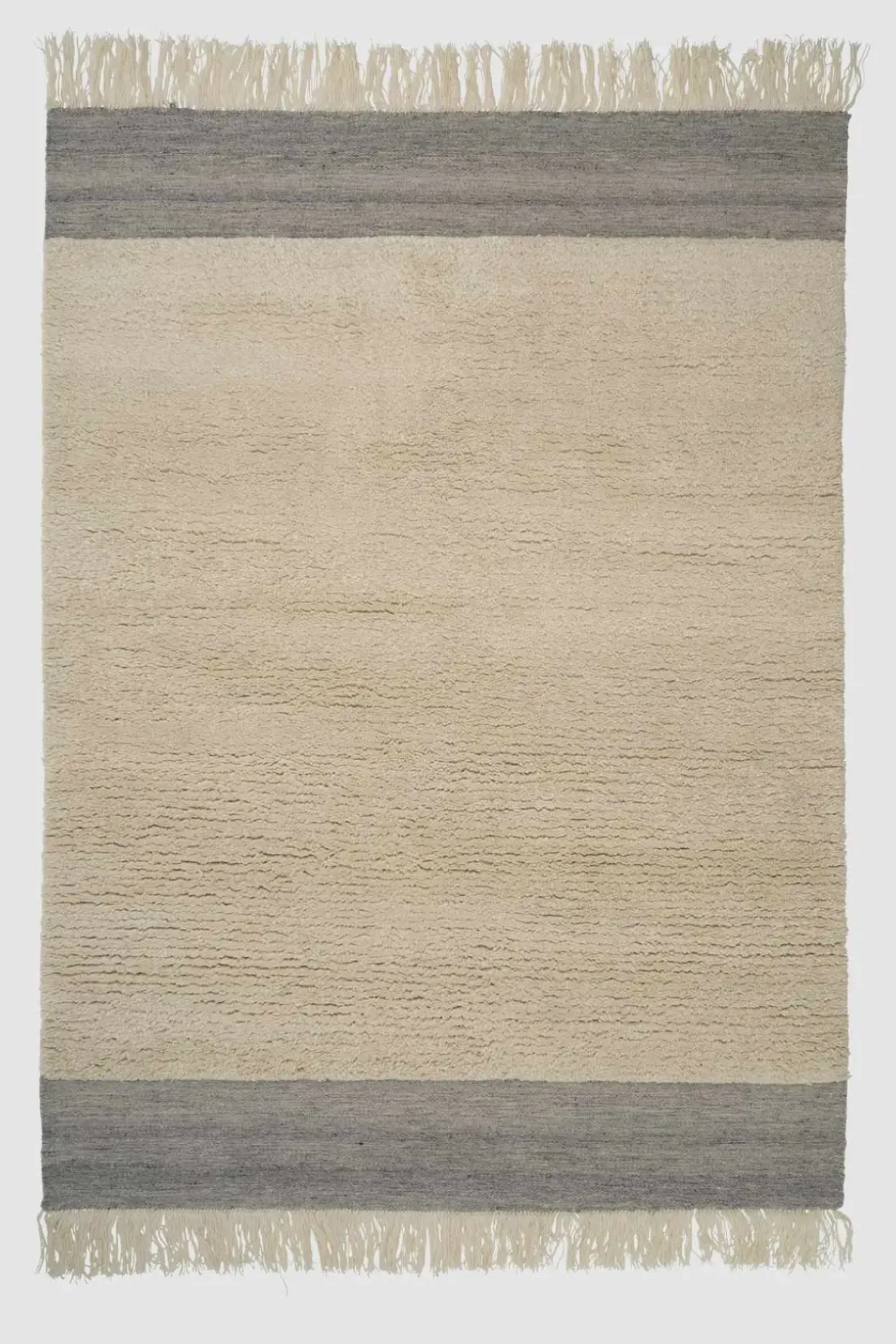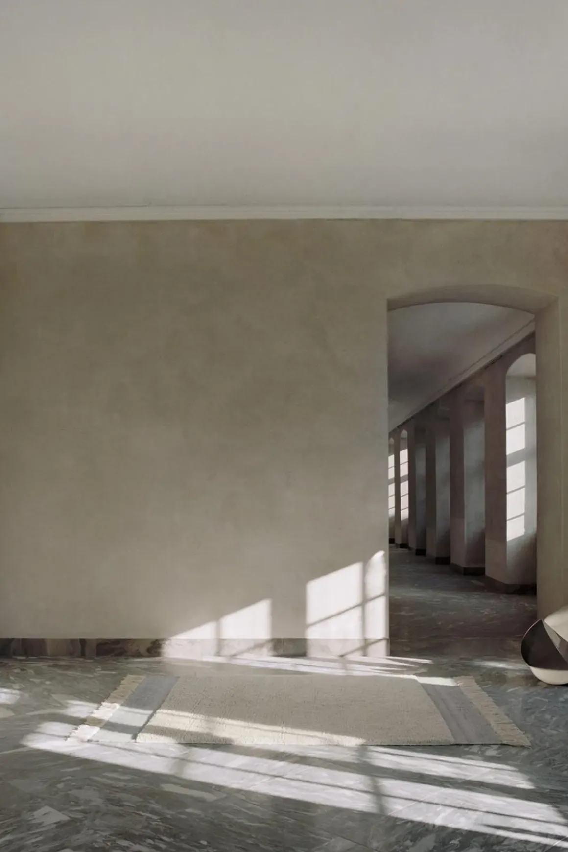 Humble Act gulvteppe fra Linie Design i fargen Stone, designet av Urd Moll Gundermann. Humble Act er håndknyttet med et intrikat håndverk og en forsiktig komposisjon av tonale og strukturelle kontraster som gir et beskjedent, sobert uttrykk. Den tykke, myke luven er innrammet i hver ende av flatvevde seksjoner og lange flytende frynser, og skaper et samspill av dimensjoner og struktur som gir liv til de ufargede garnene. Laget i myk New Zealand ull med en økologisk bomullsrenning – begge materialer valgt for sin holdbarhet og naturlige rustikke skjønnhet. Merk at variasjoner i farge og tekstur kan oppstå mellom partier av garn og fargebad. Uregelmessigheter kan oppstå som følge av den håndlagde prosessen, men dette er noe av det som gjør teppene ekstra vakre og taktile! Humble Act finnes i fargene Stone og Ivory. Kom innom butikken for å ta en nærmere titt på farger og materialprøver.