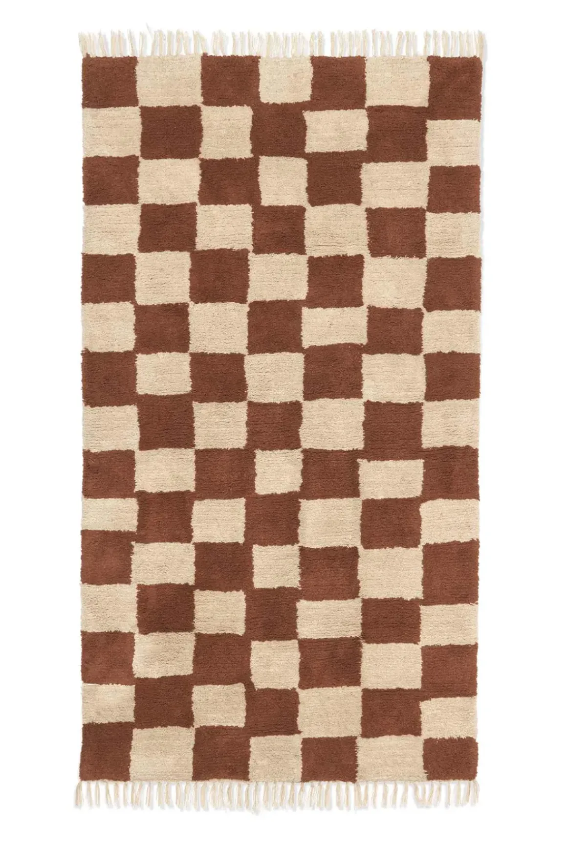 Mara Washable Rug fra Ferm Living er et mykt, rutet gulvteppe i økologisk bomull med dekorative frynser som kan passe i flere rom. Gi soverommet, barnerommet, kjøkkenet eller gangen en mykere touch. Håndtuftet fra GOTS-sertifisert, økologisk bomull, og er et vågalt, men balansert design som vil gi ethvert rom et lekent element av kontrast. Det beste er at du bare kan hive den i vaskemaskinen når den blir møkkete, som gjør teppet enda mer praktisk og brukervennlig.