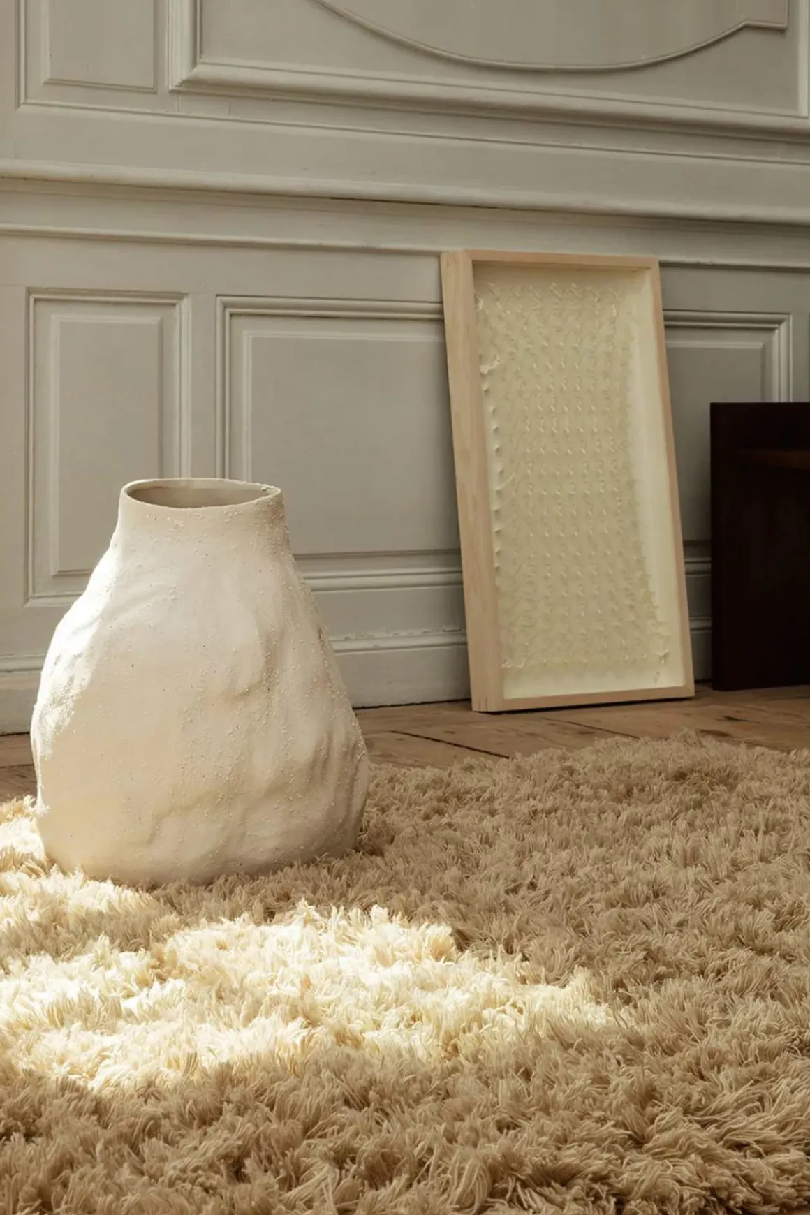 Meadow-teppet fra Ferm Living oser av komfort. Teppet er laget av høykvalitets ull fra New Zealand, den mykeste ullen du kan tenke deg. Ullen er tett tuftet for en full, myk tekstur. Dette er en moderne vri på det populære 70-talls shag-teppet, som vil gi varme og personlighet til hjemmet ditt. Den lyse sandfargen på teppet gjør det perfekt i alle interiørstiler. Perfekt i stuen eller på soverommet.