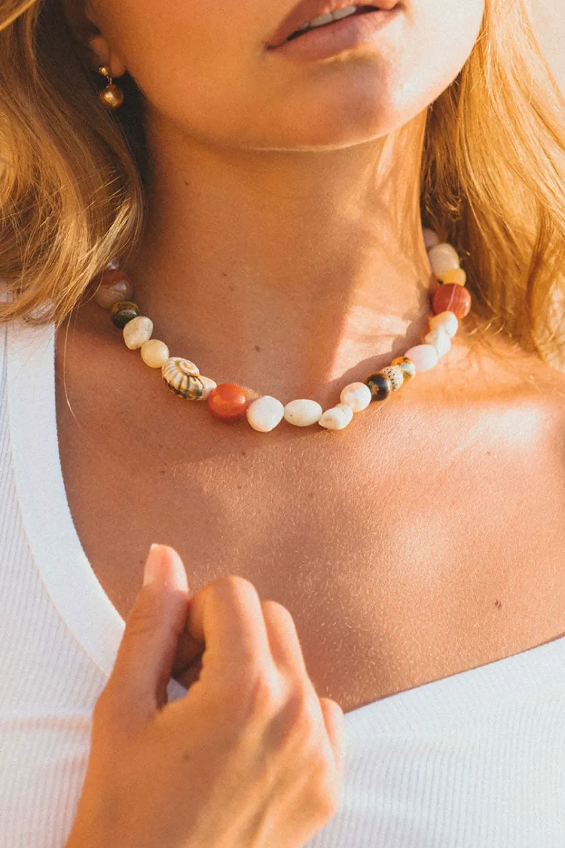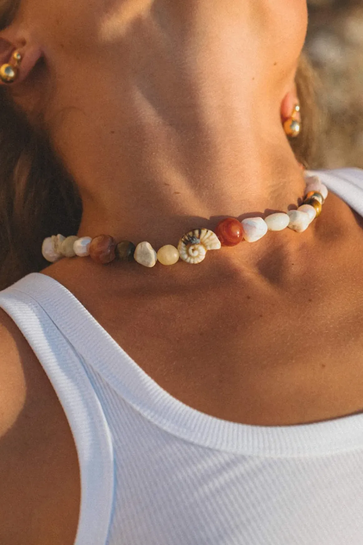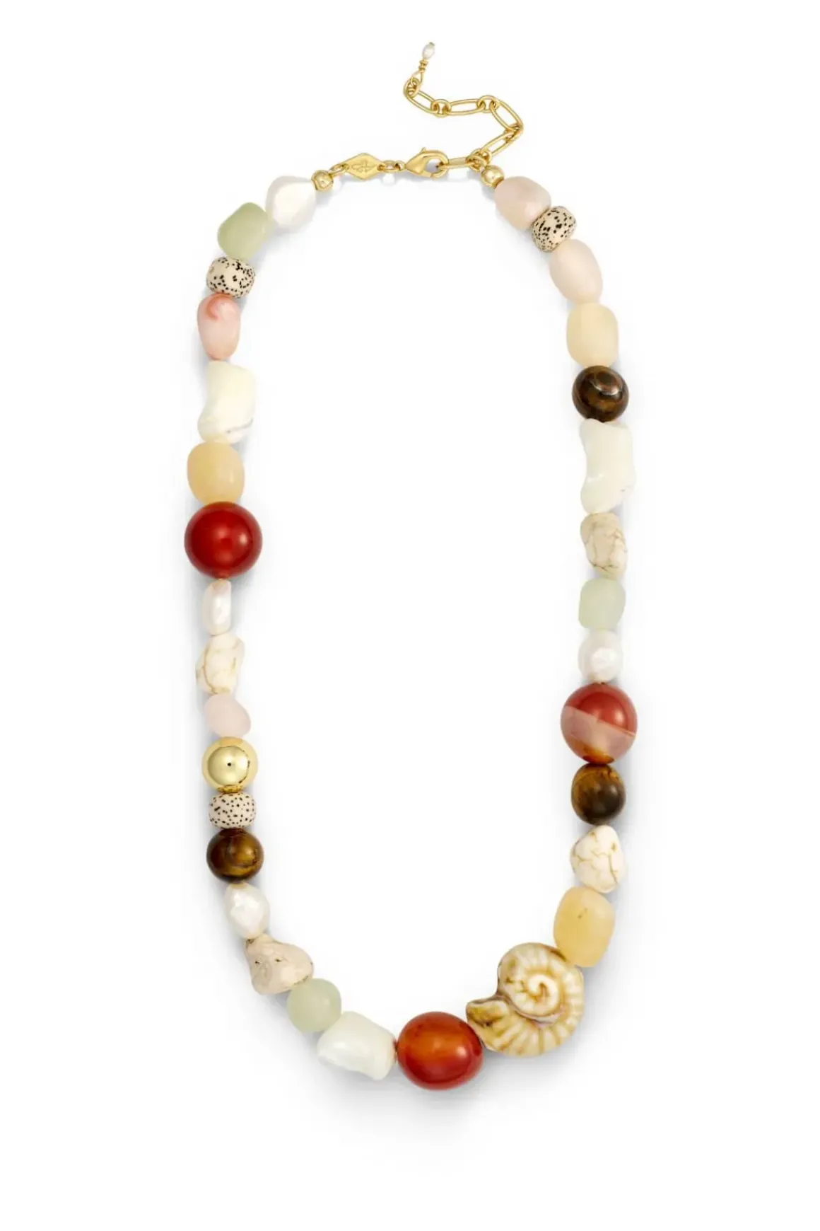 Seaside-halskjedet fra Anni Lu og Il Mare-kolleksjonen er en fargerik hyllest til havet og dets skatter. Smykket kombinerer unike perler, steiner og skjellinspirerte detaljer som minner om strandfunn og sommerdager ved kysten. Perfekt for å tilføre et lekent og personlig preg til antrekket ditt.