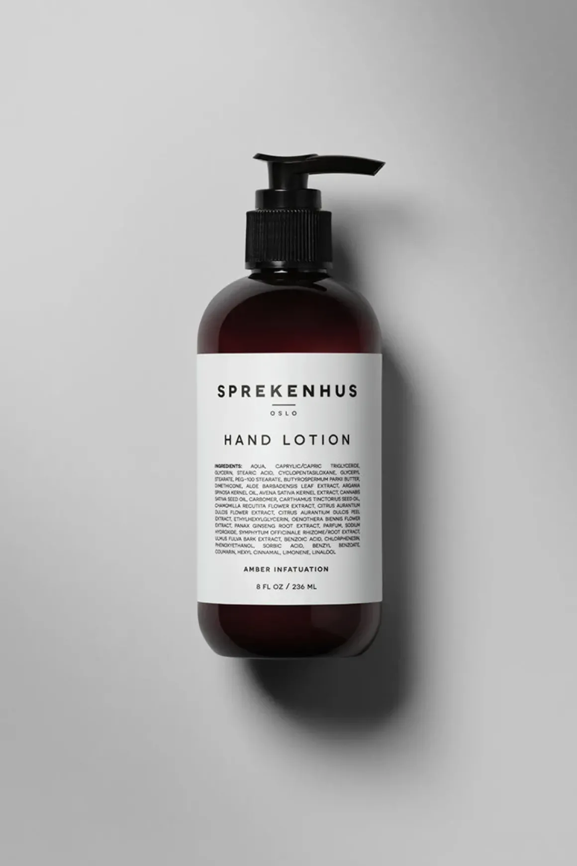 Velduftende og fuktighetsgivende håndkrem på 236ml flaske fra norske Sprekenhus. En reddende engel for tørre hender, denne håndkremen trekker raskt inn i huden og pleier med nøye utvalgte oljer. Dufter fantastisk av blant annet sort pepper, bergamot, koriander, lavendel og med hint av patchouli, vanilje og kremet musk.