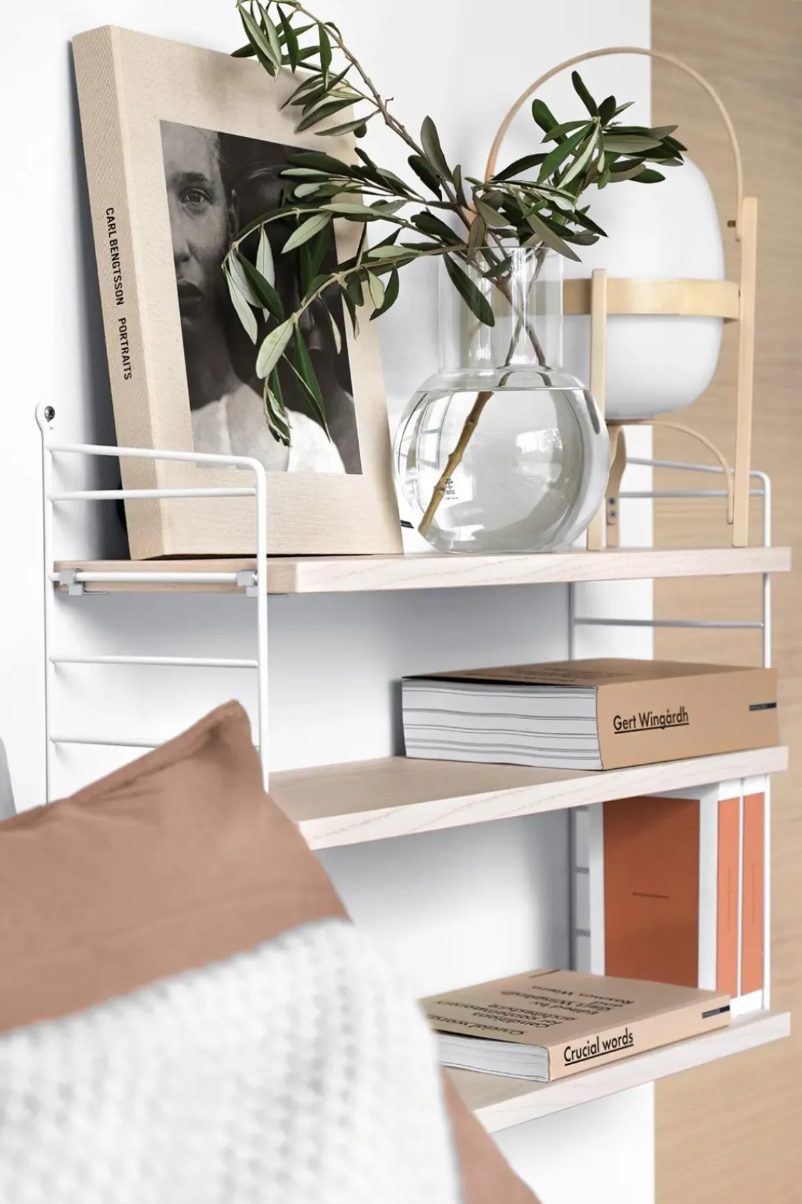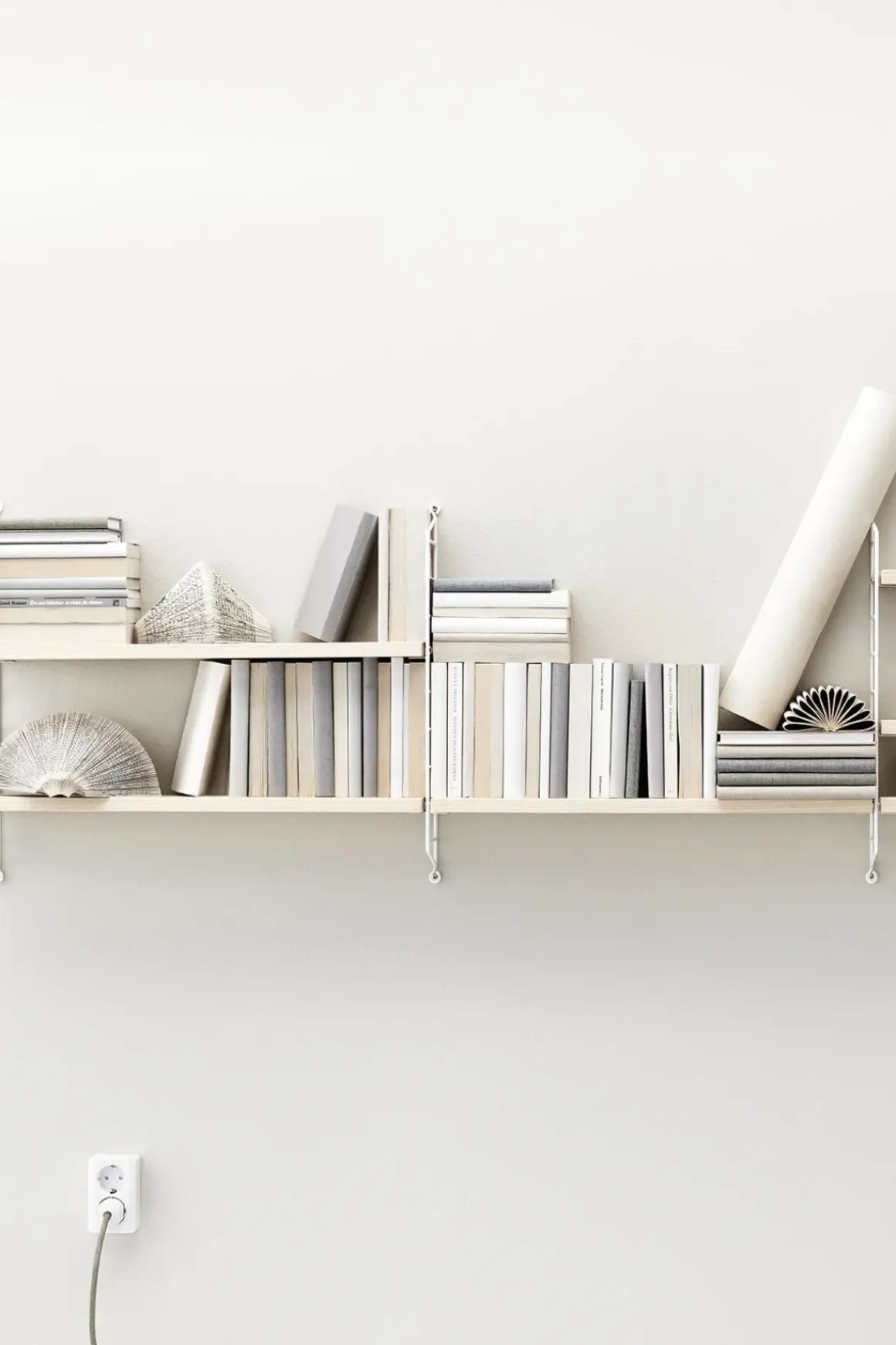 Hyllene fra String ble først designet i 1949 av Nils Strinning og var allerede da et kjent design-ikon. Nå som String har tatt opp produksjonen igjen er hyllene, om mulig, blitt enda mer populære. Med sin tidløse design og utallige bruksområder er String noe som passer inn i et hvert hjem, uavhengig av stiler og trender.