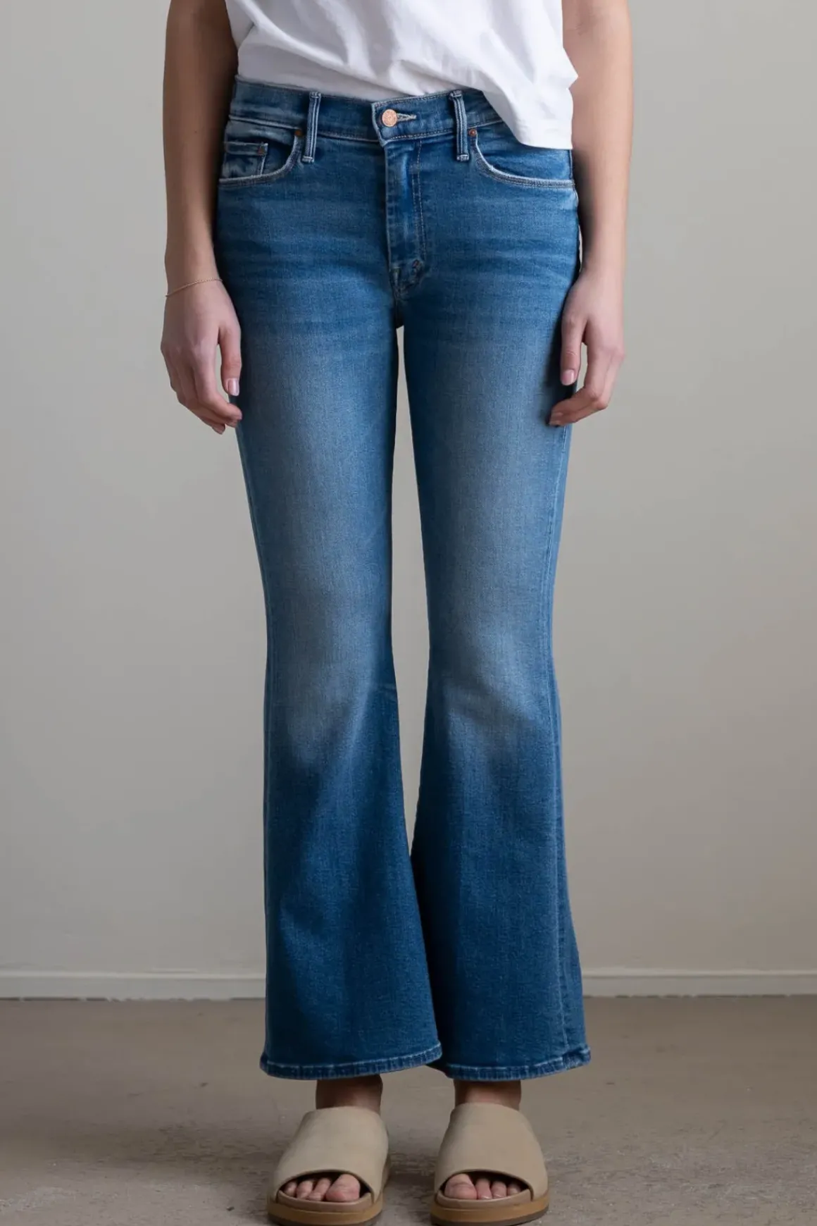 Lil Weekender fra Mother er en bestselgende jeans fra LIL’ MOTHER-kolleksjonen, spesielt tilpasset deg med høyde under 163 cm. Modellen har et mellomhøyt liv og sitter smalt over hofte og lår før den skrår ut i en lett sleng. Proposjonene er justert med kortere livhøyde, høyere kneplassering og kortere benlengde for at passformen skal sitte som den skal. Vasken Layover er en klar mellomblå med slitte partier og whiskering som gir jeansen et avslappet og hverdagsvennlig uttrykk. Lil Weekender kan også passe deg over 163 cm som ønsker en jeans med kortere benlengde.