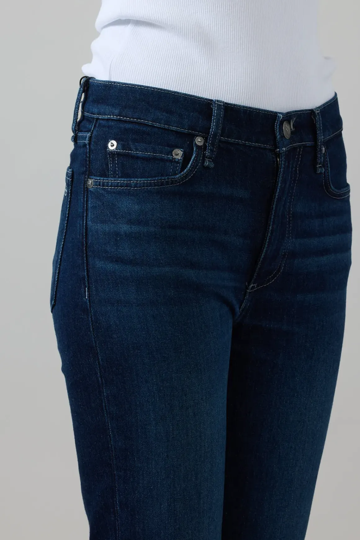 Peyton jeans fra Ragu0026amp;Bone. Jeansen har en mellomhøy midje og bootcut passform, som gir en flatterende silhuett. Peyton kommer i en mørk indigovask med vintage stretch. Videre er jeansen utstyrt med glidelås i front, kuttet fald og lommer i front og bak.