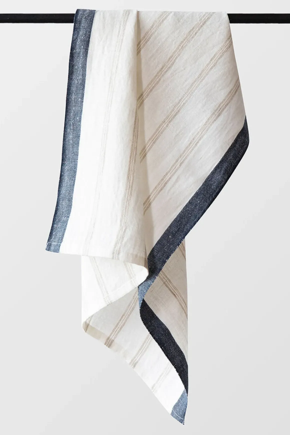 Vakkert stripete kjøkkenhåndkle fra Tell Me More, i 90% lin og 10% bomull. Håndkle har et sobert design med striper og dempede farger. Maya har en tynn linkvalitet og en vakker struktur som gir et tidløst design og vil leve sesong etter sesong. Håndkle har i tillegg fantastiske egenskaper som er ideelle for kjøkkentekstiler; høy sugeevne, hurtigtørkende, holdbart og langvarig.