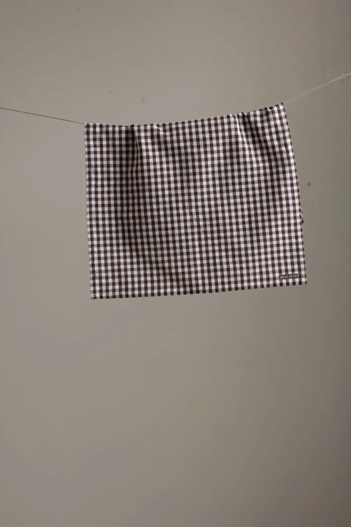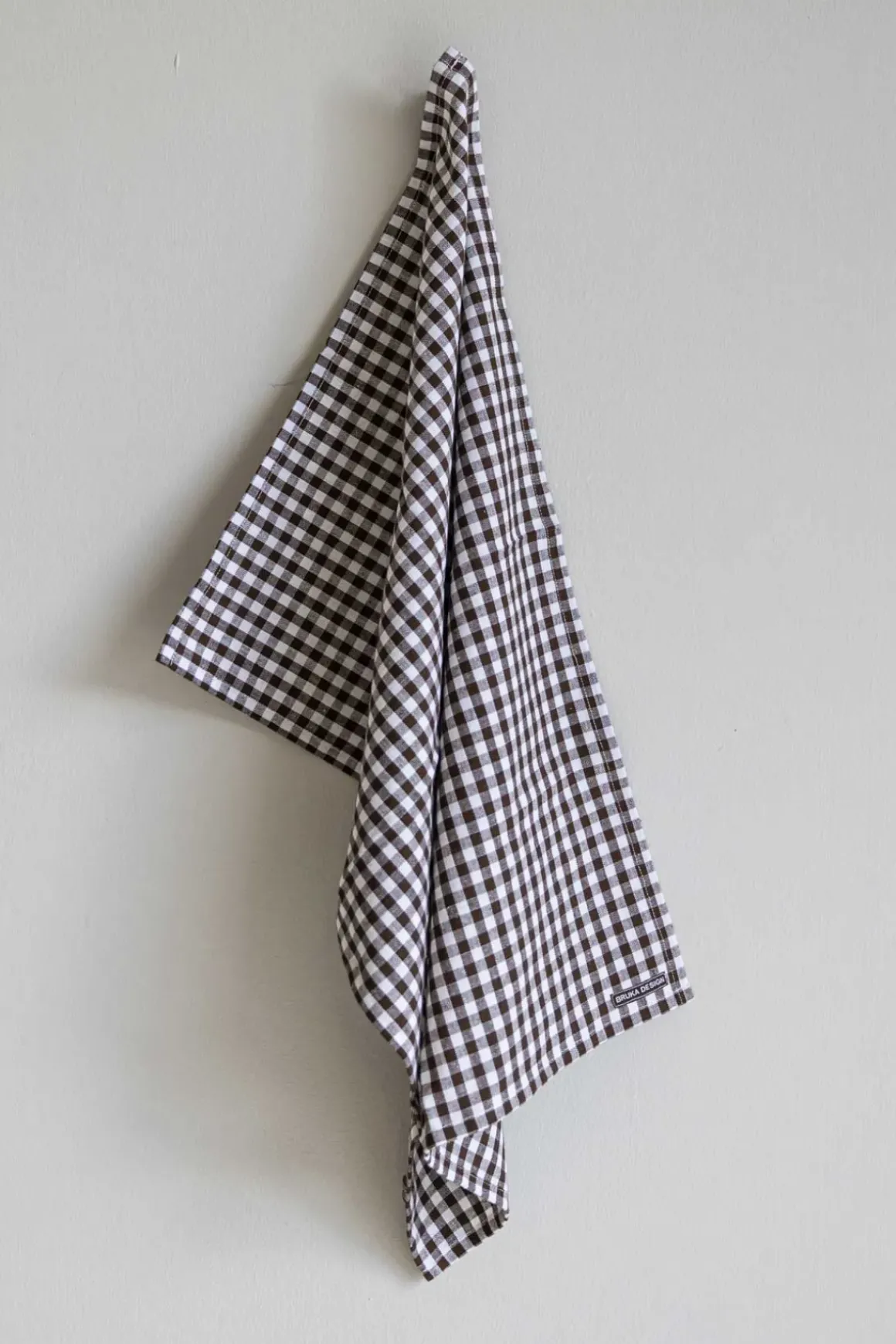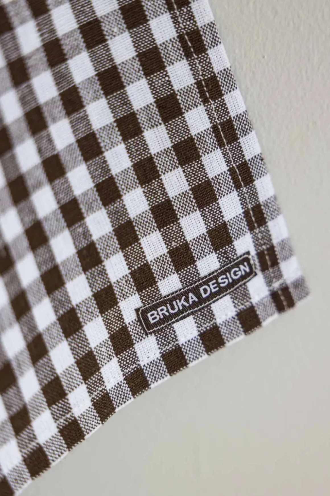 Nydelig kjøkkenhåndkle i nostalgisk design med brune og hvite ruter fra svenske Bruka. Praktisk hank på både kortsiden og langsiden til å henge på veggen.