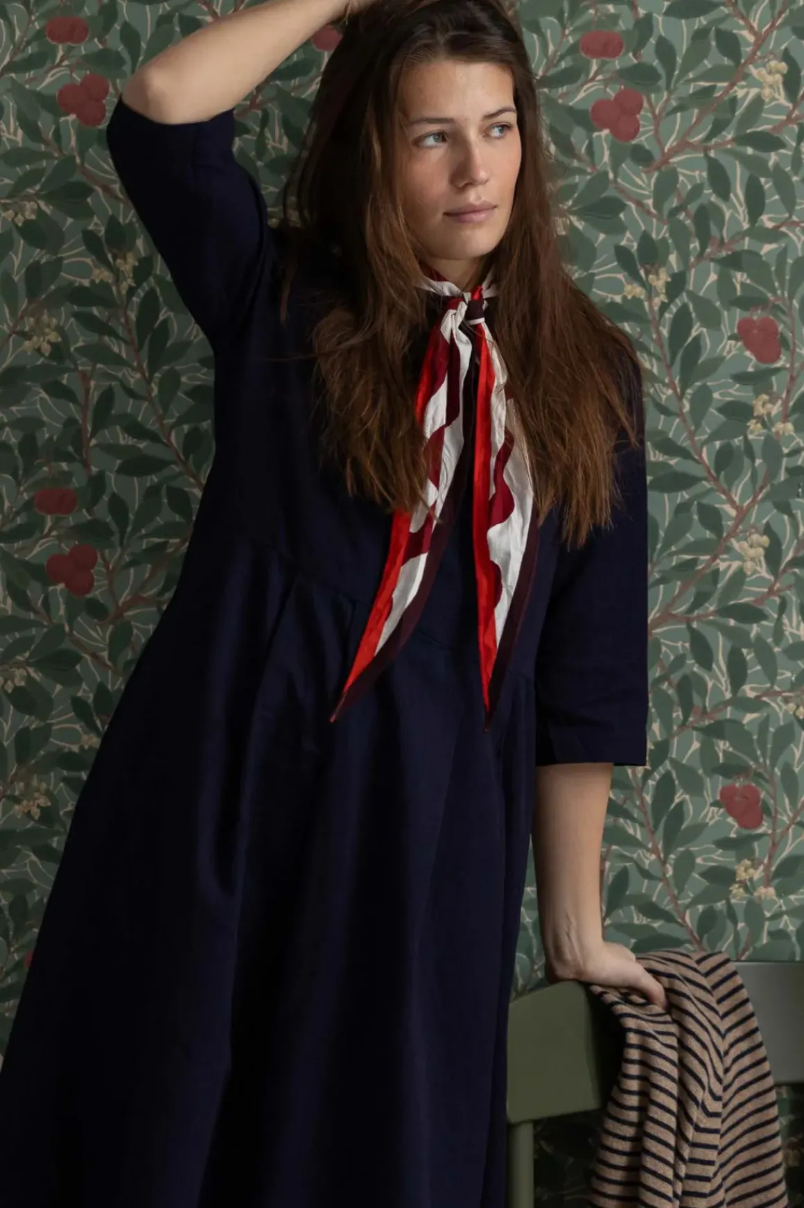 Franca-kjolen fra Toast er en tidløs og nydelig kjole med detaljer som skaper et gjennomført uttrykk. Laget i myk bomullstwill med en båthals som rammer inn snittet. Inverterte og rette legg foran gir skjørtet flott bevegelse, mens praktiske sidelommer gjør den både funksjonell og allsidig. De spette nyansene i indigo gir plagget ekstra karakter. Franca er en kjole du alltid kan vende tilbake til. På grunn av fargeteknikken kan den avgi farge i starten, så vi anbefaler at du maskinvasker den på 30 °C før bruk og unngår kontakt med lyse tekstiler og møbler.