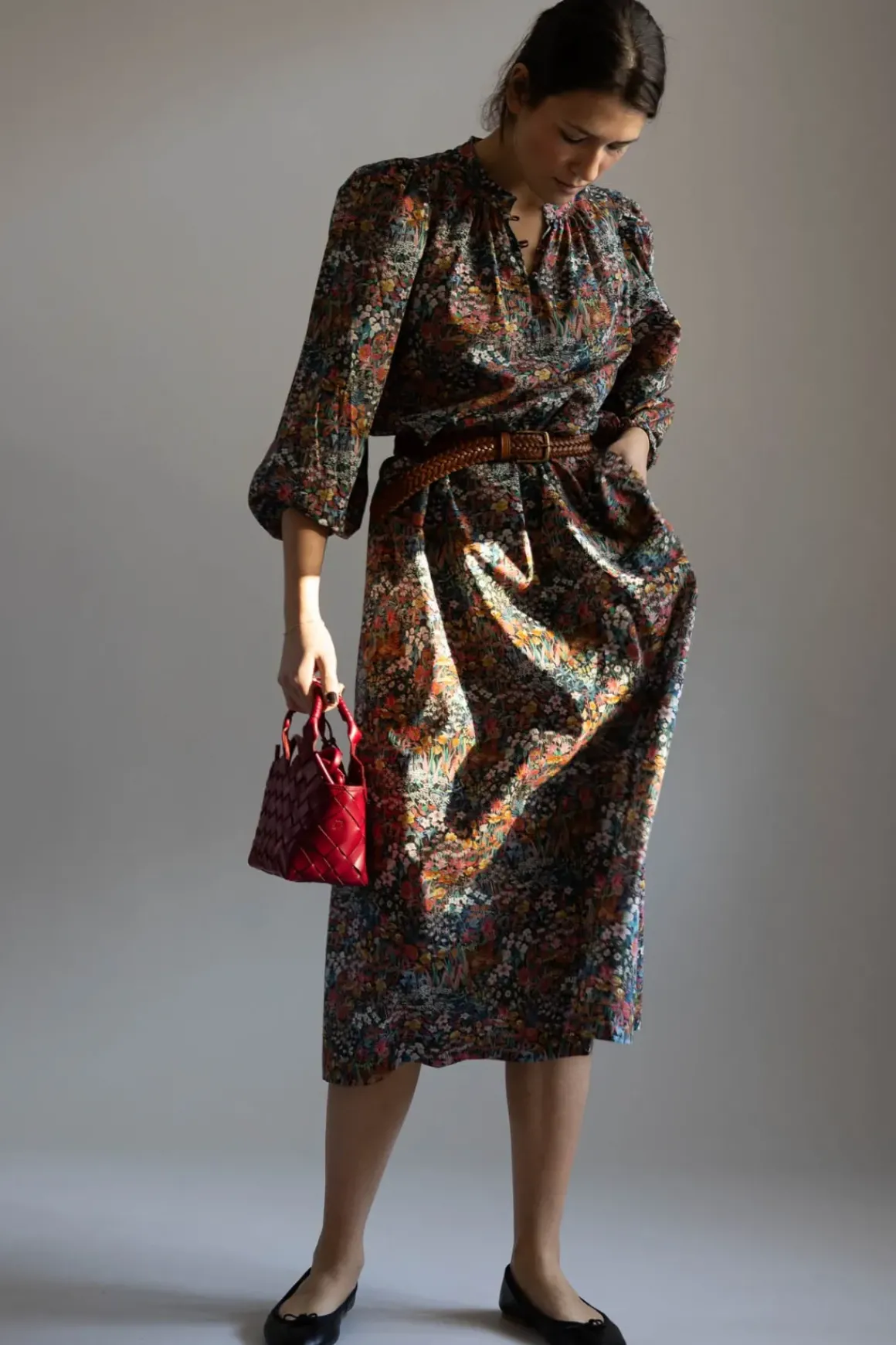 Signaturkjolen New Maya fra danske Apof har en avslappet silhuett, delikate puffede ermer og en åpen hals som gir et tidløst og feminint uttrykk. Det detaljerte Faria Flowers-printet fra Liberty Fabrics skaper en levende botanisk look, og gjør kjolen til en favoritt du kan bruke både til hverdags og fest. Den luftige passformen kan justeres med det matchende beltet og den myke bomullen gjør kjolen lett og behagelig mot huden. Maya-kjolen er en allsidig klassiker du vil elske sesong etter sesong.