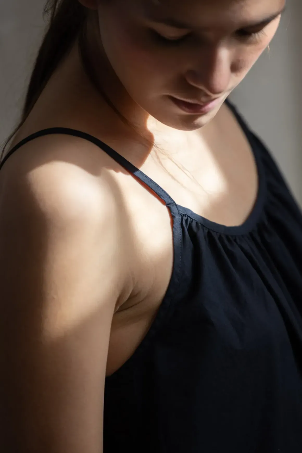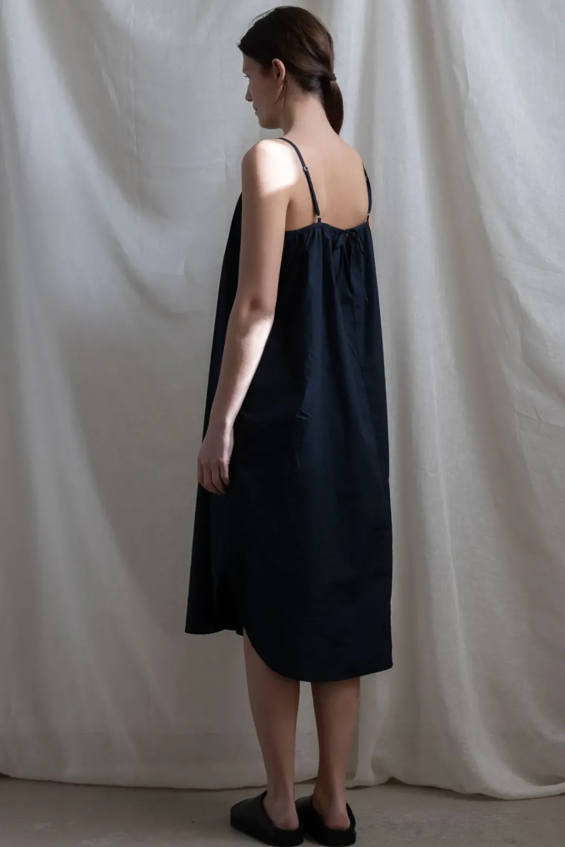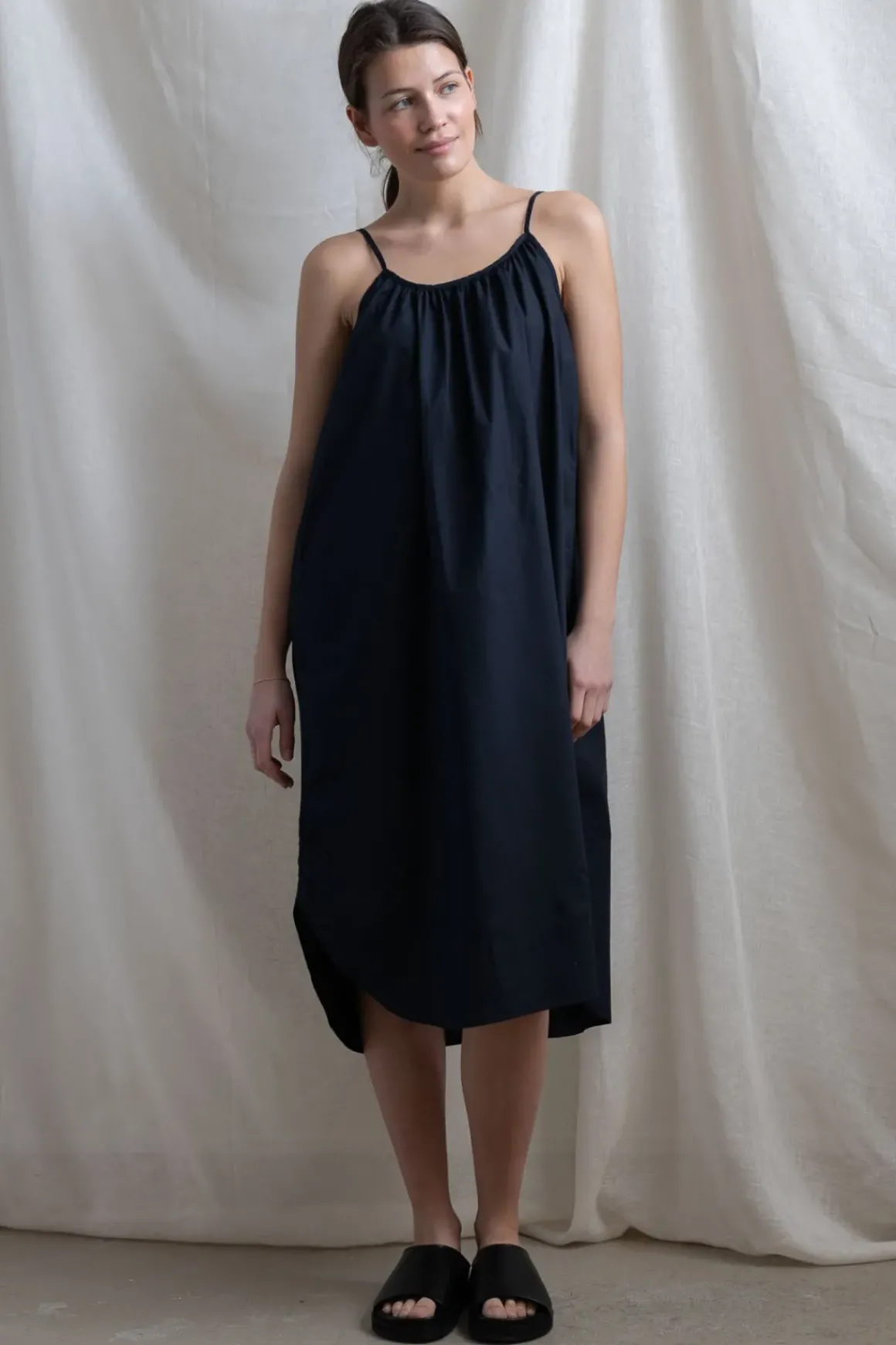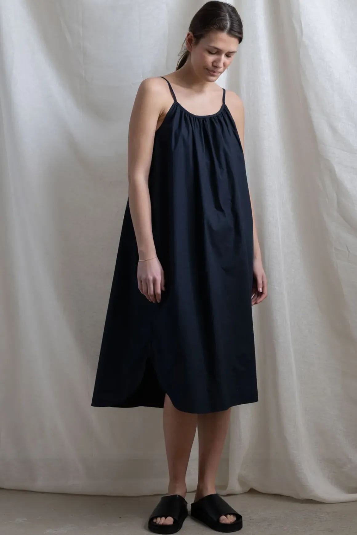 Strap Dress fra Aiayu er en lett og luftig sommerkjole laget i GOTS-sertifisert økologisk bomull. Kjolen har regulerbare skulderstropper, avrundet fald og en dekorativ knytedetalj i ryggen. Diskré broderie anglaise langs sidesømmen gir et subtilt løft til det enkle designet. Kjolen er produsert på en ansvarlig og bærekraftig måte med fokus på både miljø og arbeidsforhold, fra jord til ferdig plagg.