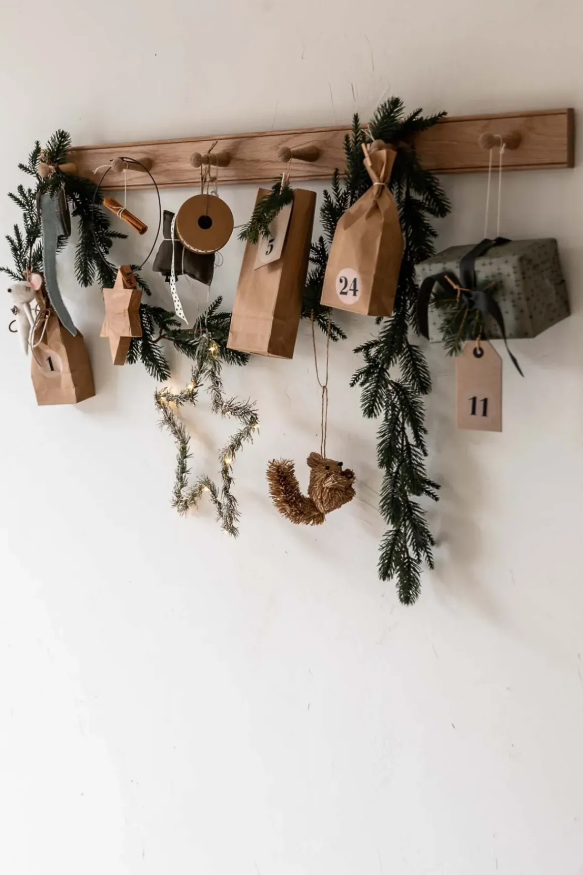 En vakkert utformet knaggrekke i eik med 6 stk knagger laget med en perlet detalj. Kul på kjøkkenet til tekstiler eller i entréen til jakker. Knaggrekken har skjulte nøkkelhullsfester bak. Tips! Bruk knaggrekken til å henge kalendergaver på. Enkelt og superfint!
