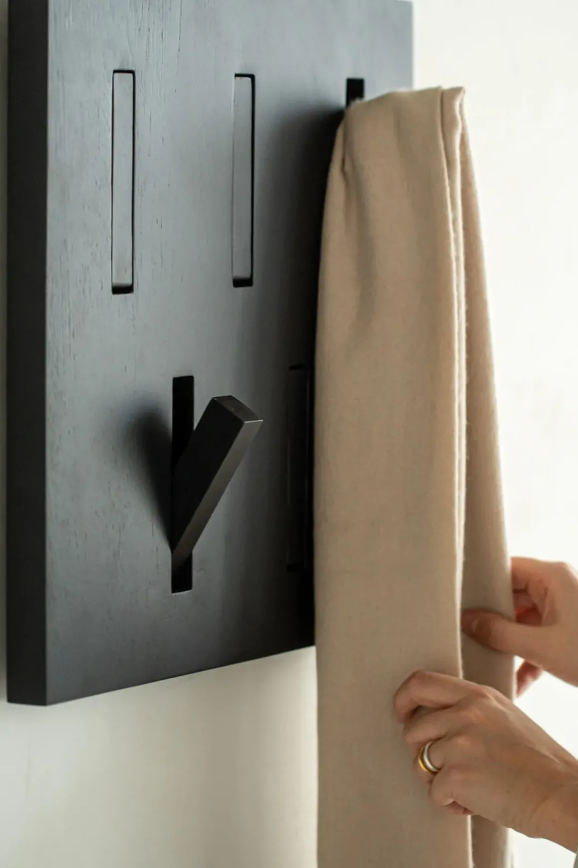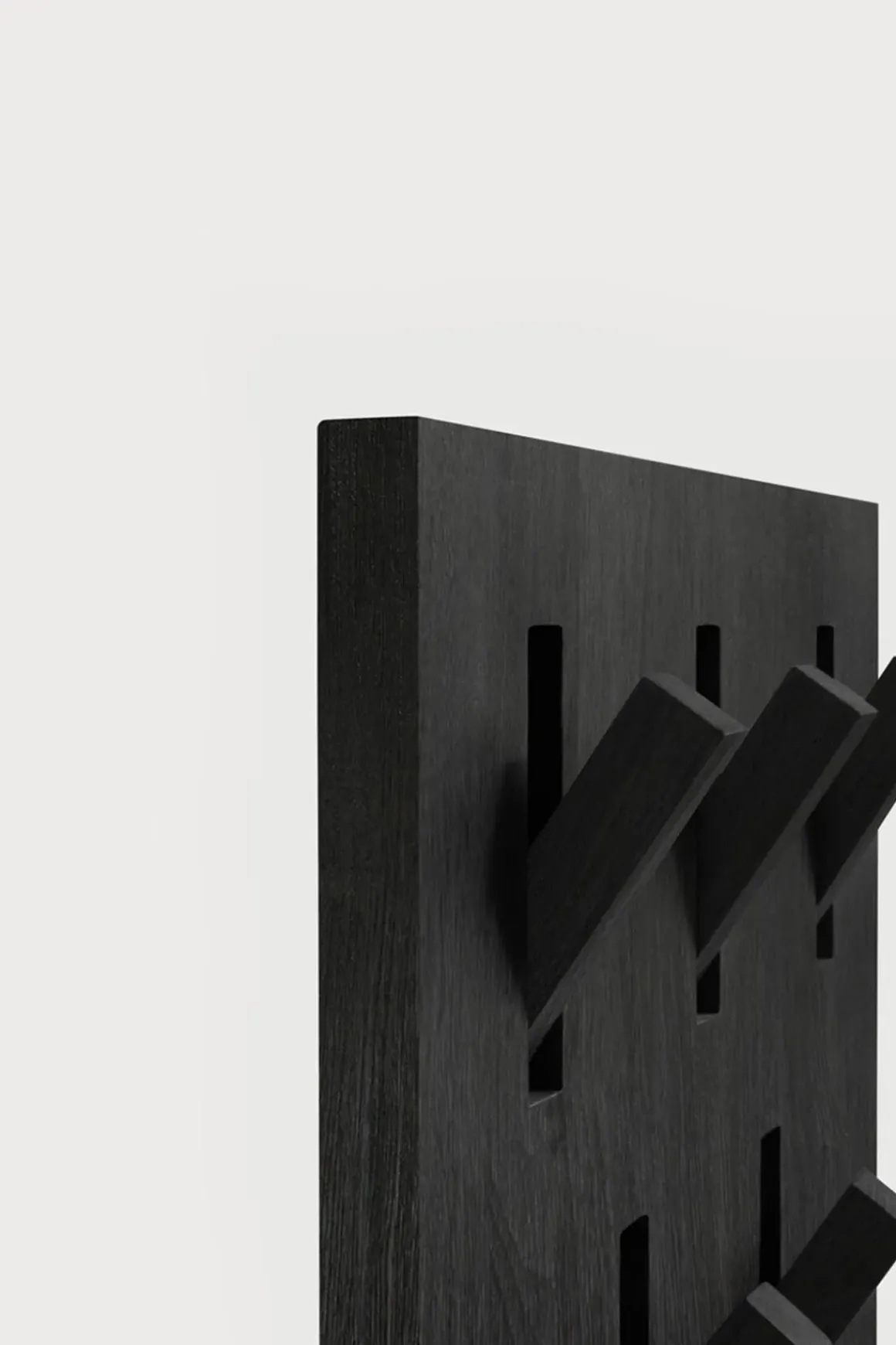 Utilitile knaggrekken fra Ethnicraft er noe litt utenom det vanlige og kombinerer form og funksjon perfekt. Denne minimalistiske knaggrekken i solid, sort eik er et annerledes alternativ den tradisjonelle knaggrekken og vil heve helhetsinntrykket i gangen flere hakk. I tillegg får du optimalisert veggplassen slik at du får plass til å henge opp flere kåper, jakker og vesker og annet tilbehør. Hvis Utilitile ikke er i bruk, kan du bare dytte knaggene inn slik at det blir en slett, jevn flate. Finnes også i naturlig eik.