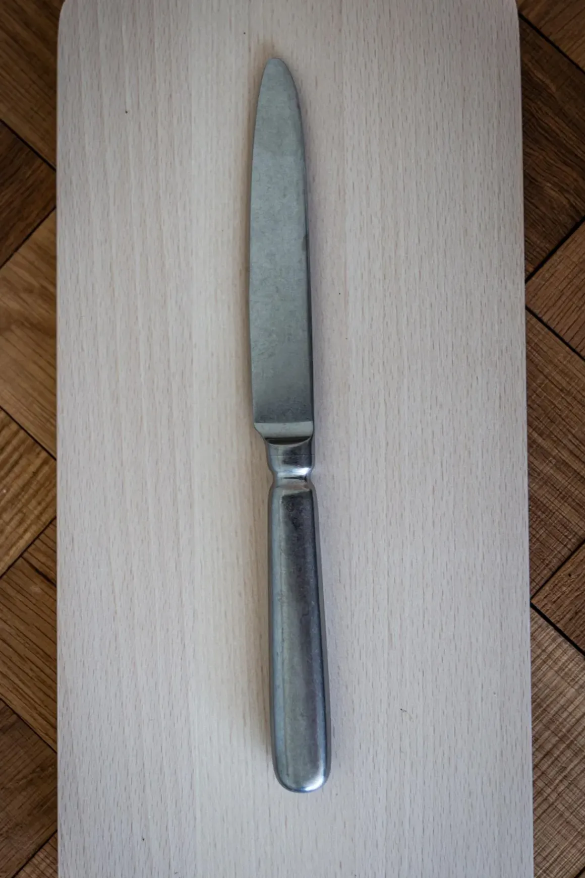 Klassisk kniv i rustfritt stål fra Serax. Design av Sergio Herman, med inspirasjon fra klassisk servise med et moderne uttrykk. Surface-serien til Serax er basert på serviset man ofte finner på franske restauranter, og er utført i rustfritt stål med en matt vintage look.